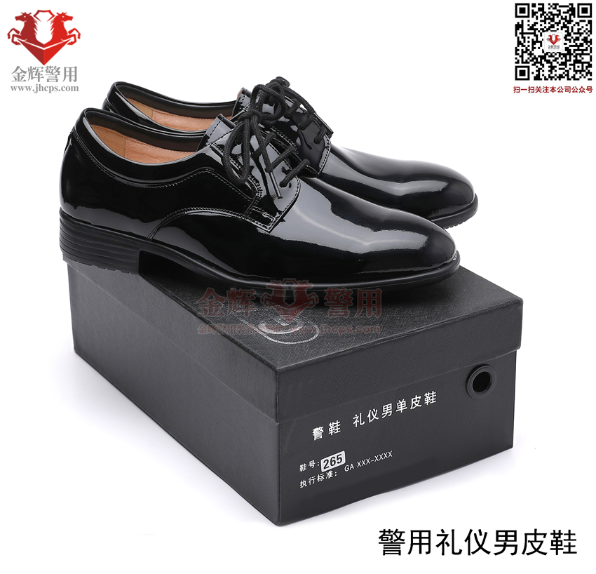 新式警禮儀皮鞋采用頭層皮及黑色頭層黃牛幫面革,發泡橡膠主體+防滑片+耐磨片鞋底,上腳舒適,搭配警察新式禮服更加精神美觀。各類型號齊全,男女款式可選。實物大圖↓