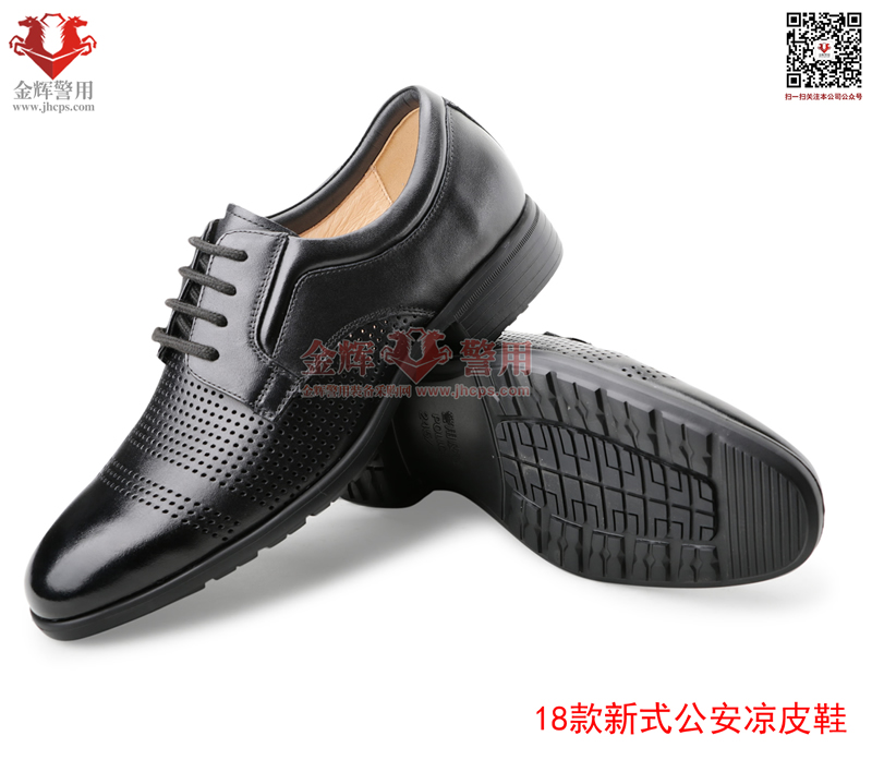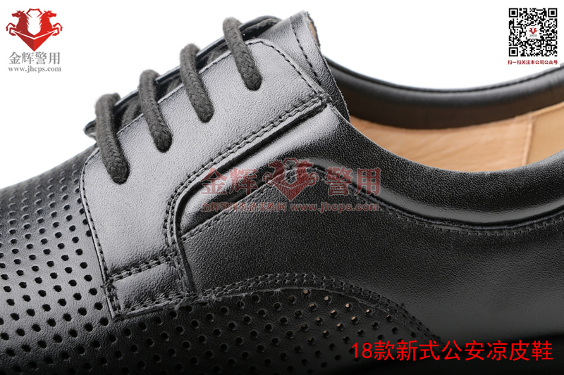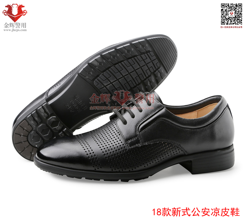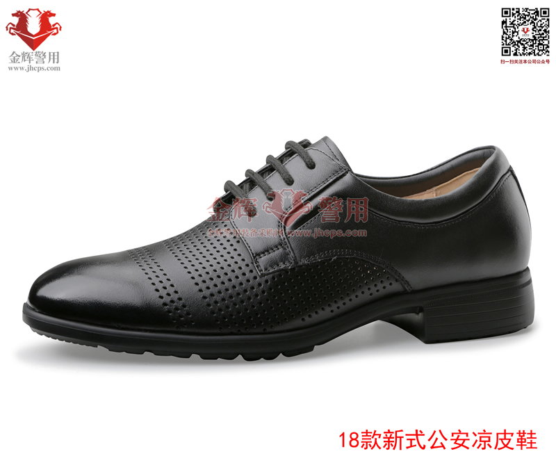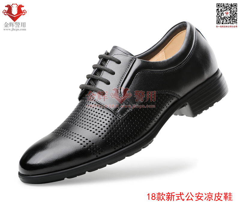 18新式男公安制式涼皮鞋,采用頭層顆粒牛皮,橡膠底,一次打孔涼皮鞋具備了透氣舒適,鞋底軟防滑好等特點。搭配制式警服美觀得體。公安部入圍企業出品質量可靠。