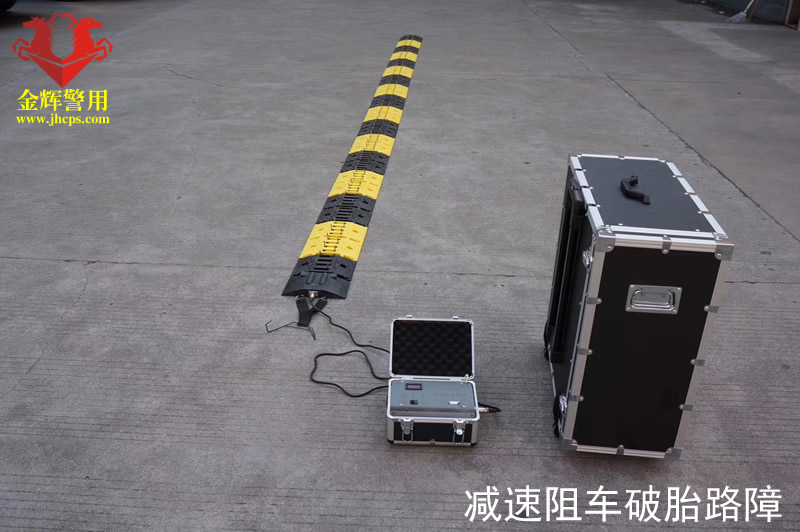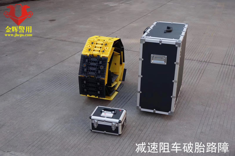 便攜式遙控阻車路障由高性能增強塑塊與不銹鋼放氣空心針組合而成,采用機電一體遙控裝置,操作簡便,安全可靠,可隨時設卡,流動布防,不影響正常道路暢通,是公安、武警、治安等執法部門,需要設卡攔截疑犯車輛時不可缺少的先進裝備。