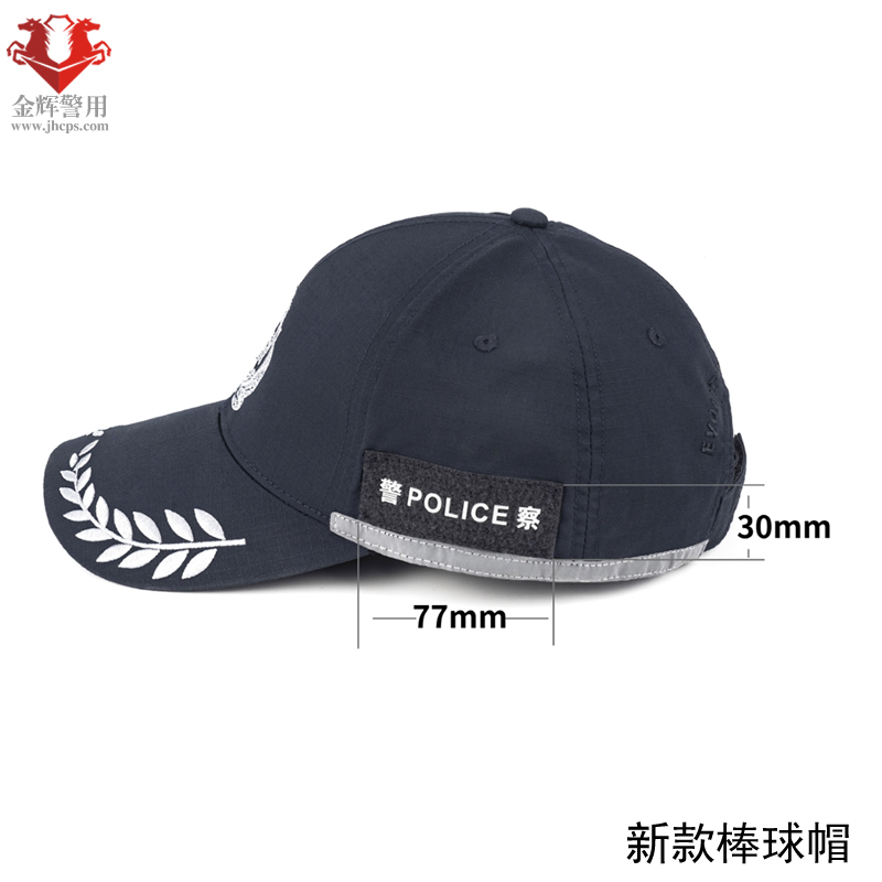 面料成分:TC65/35(65%聚酯纖維 35%棉 )±5% 帽檐上面帶有銀光圖案刺繡。 帽檐底部絨面,有效杜絕反光影響視覺。 帽子側面帶有絨面魔術貼并留有空隙,可穿插固定眼鏡,魔術貼外面有POLICE警察字樣 帽子下邊沿帶有反光條設計 帽子背面魔術貼設計,可隨意調節頭圍大小。