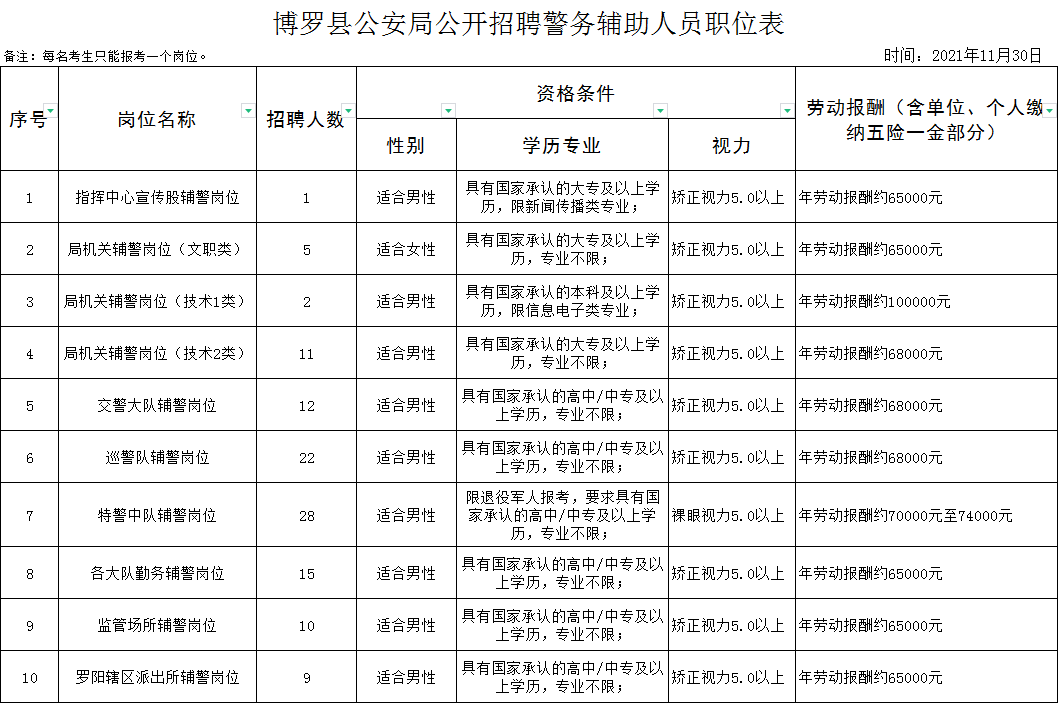 金輝警用裝備采購網分享消息:2021廣東惠州博羅縣公安局招聘警務輔助人員公告(115人)