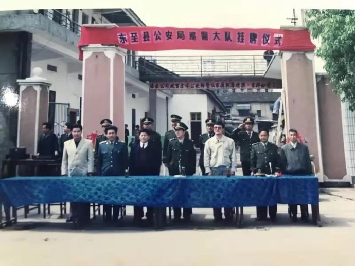 1995年,東至縣公安局巡警大隊(duì)掛牌成立時(shí)合影。