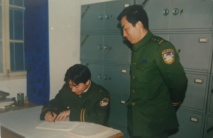 1997年,安慶市公安局老峰派出所社區(qū)民警正在記錄當(dāng)日社區(qū)工作。