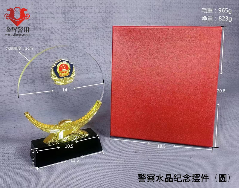 圓款警察水晶紀念擺件,一個起定,產品尺寸參數如圖: