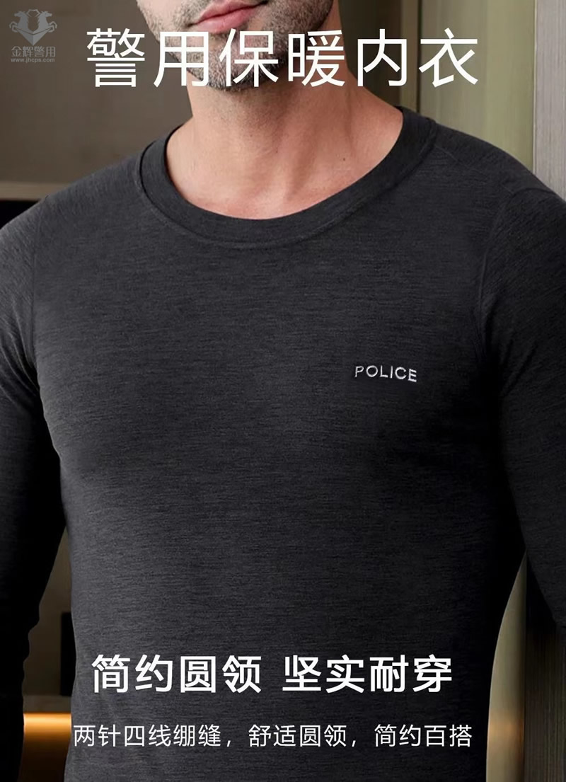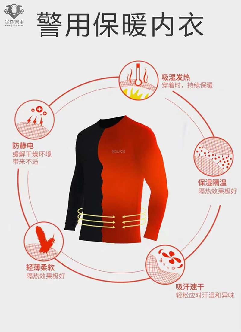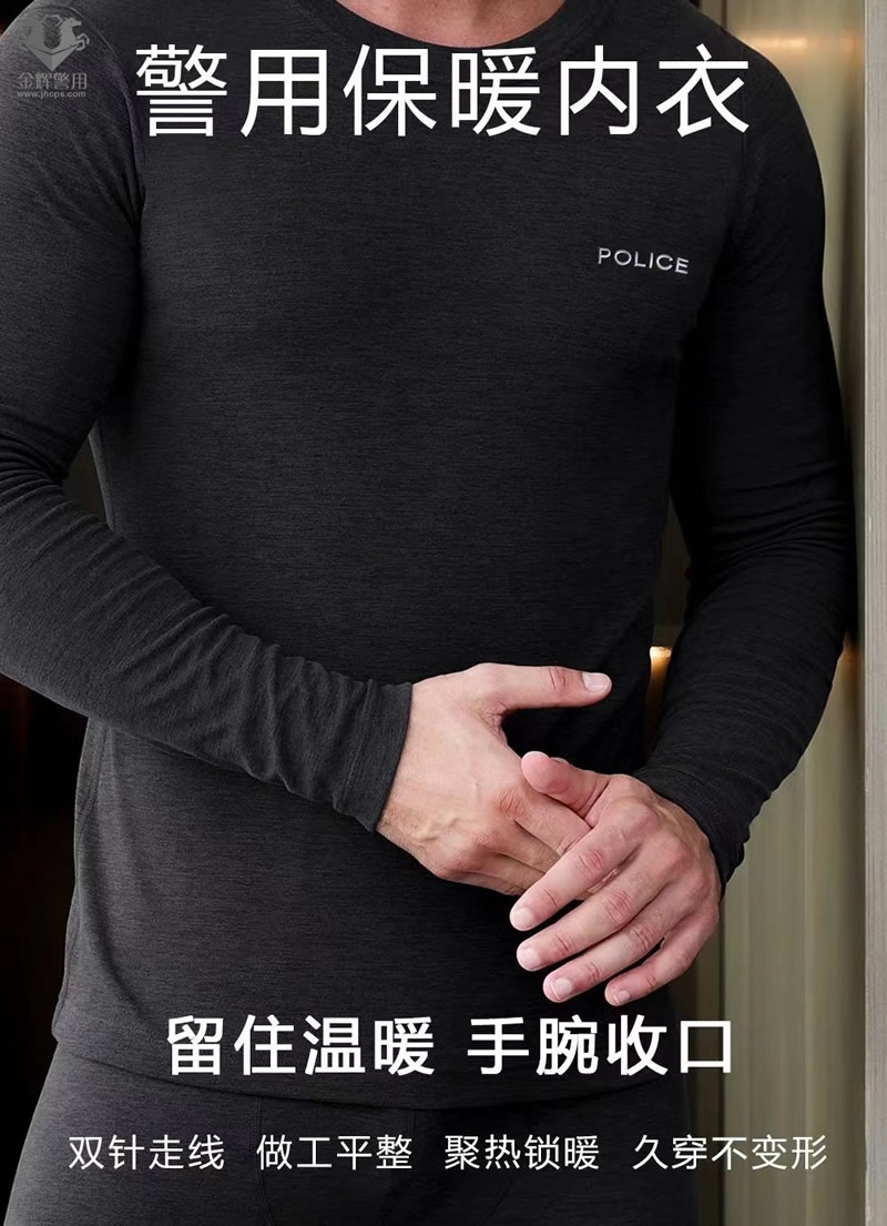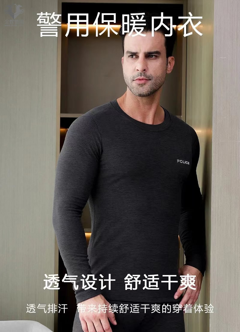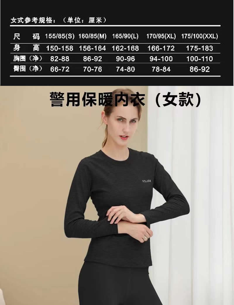 高品質警察專用雙面磨毛保暖內衣套裝,親膚舒適,透氣保暖,運動便捷修身美觀。男女型號通用,可作為睡衣,日常制服內穿防寒,圓領設計,耐用不變形。