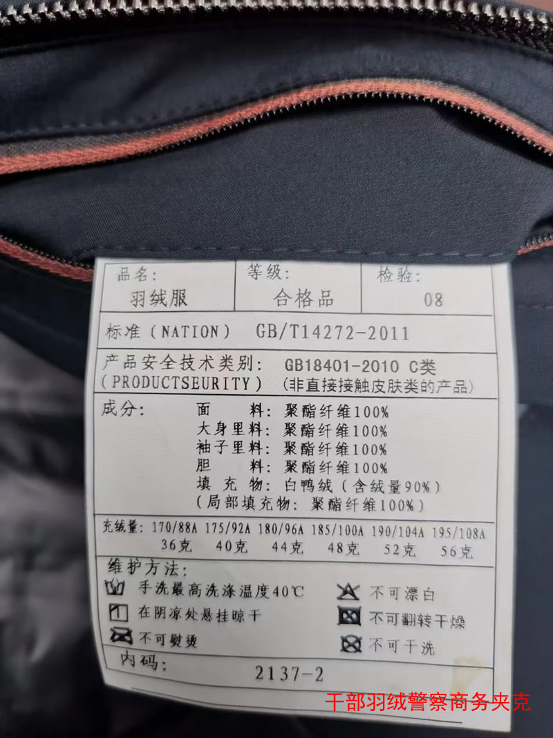 新款警務(wù)外套,經(jīng)典美觀,領(lǐng)導(dǎo)干部用警務(wù)商務(wù)夾克,羽絨款。內(nèi)外采用聚酯纖維,國標(biāo)90%絨,輕便保暖舒適。型號可按身材匹配。
