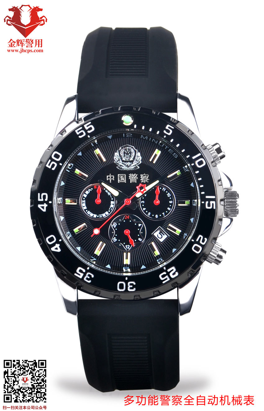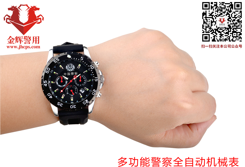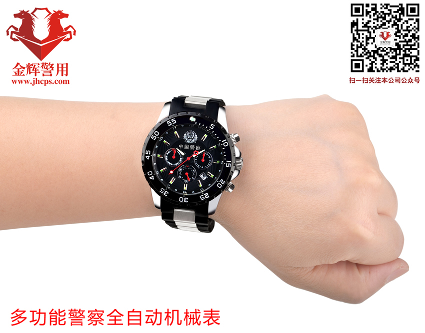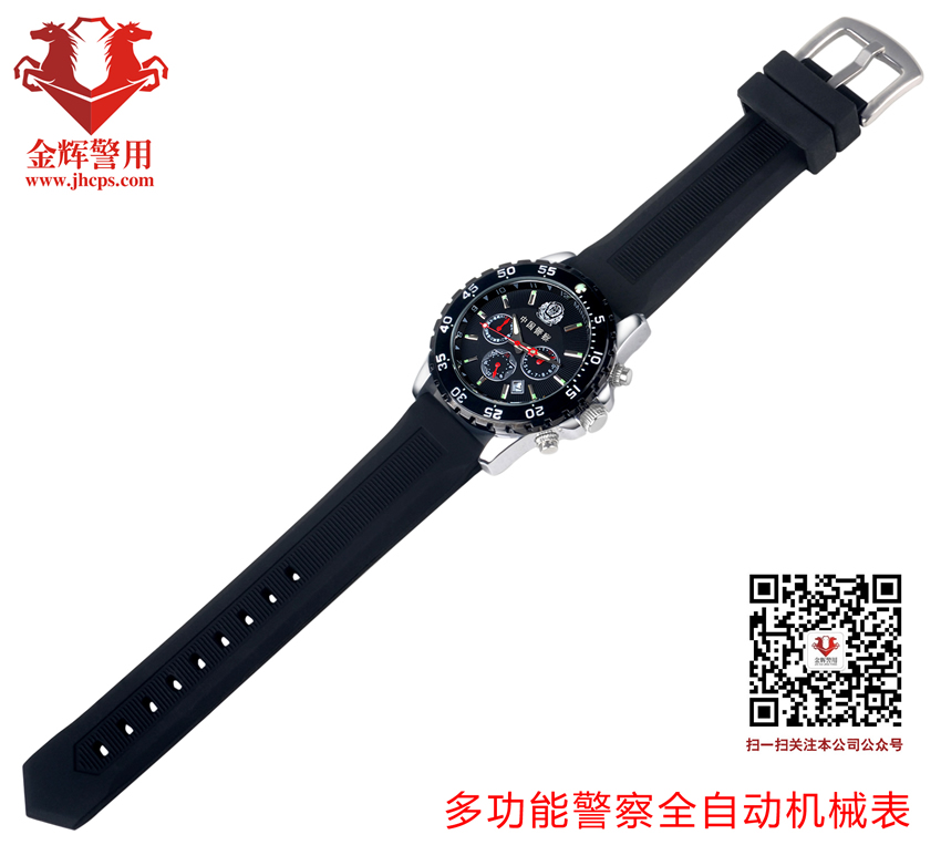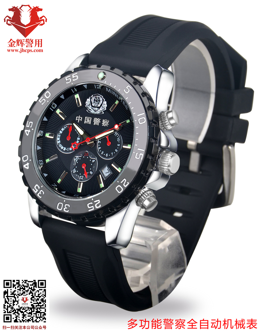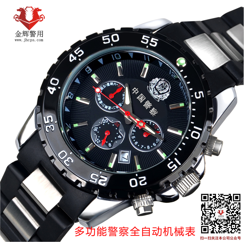 新款高檔警察全自動(dòng)多功能機(jī)械手表 正品警察不銹鋼硅膠表鏈?zhǔn)直?公安紀(jì)念配發(fā)手表