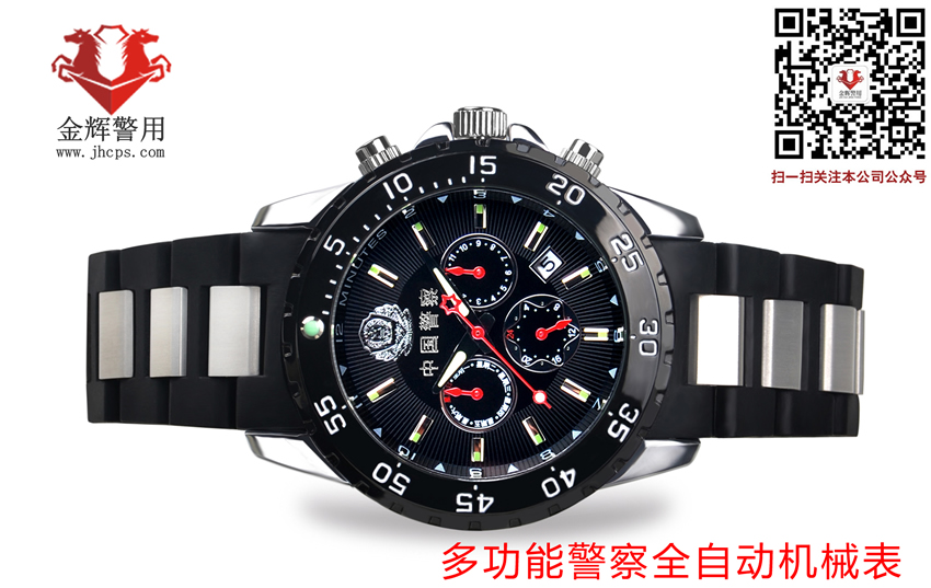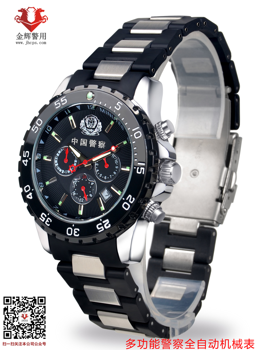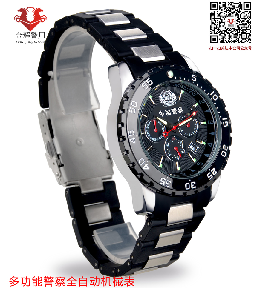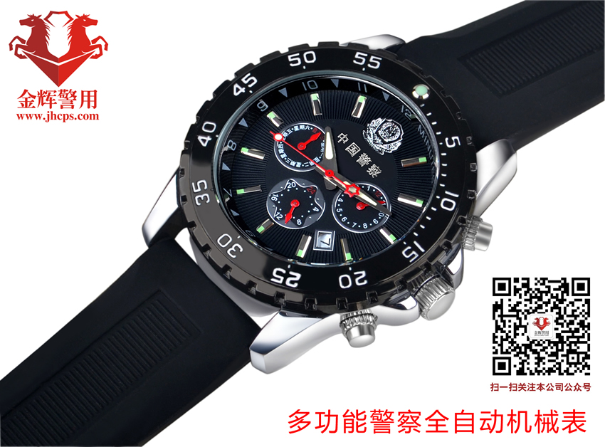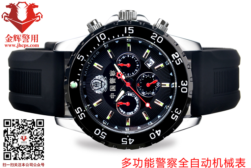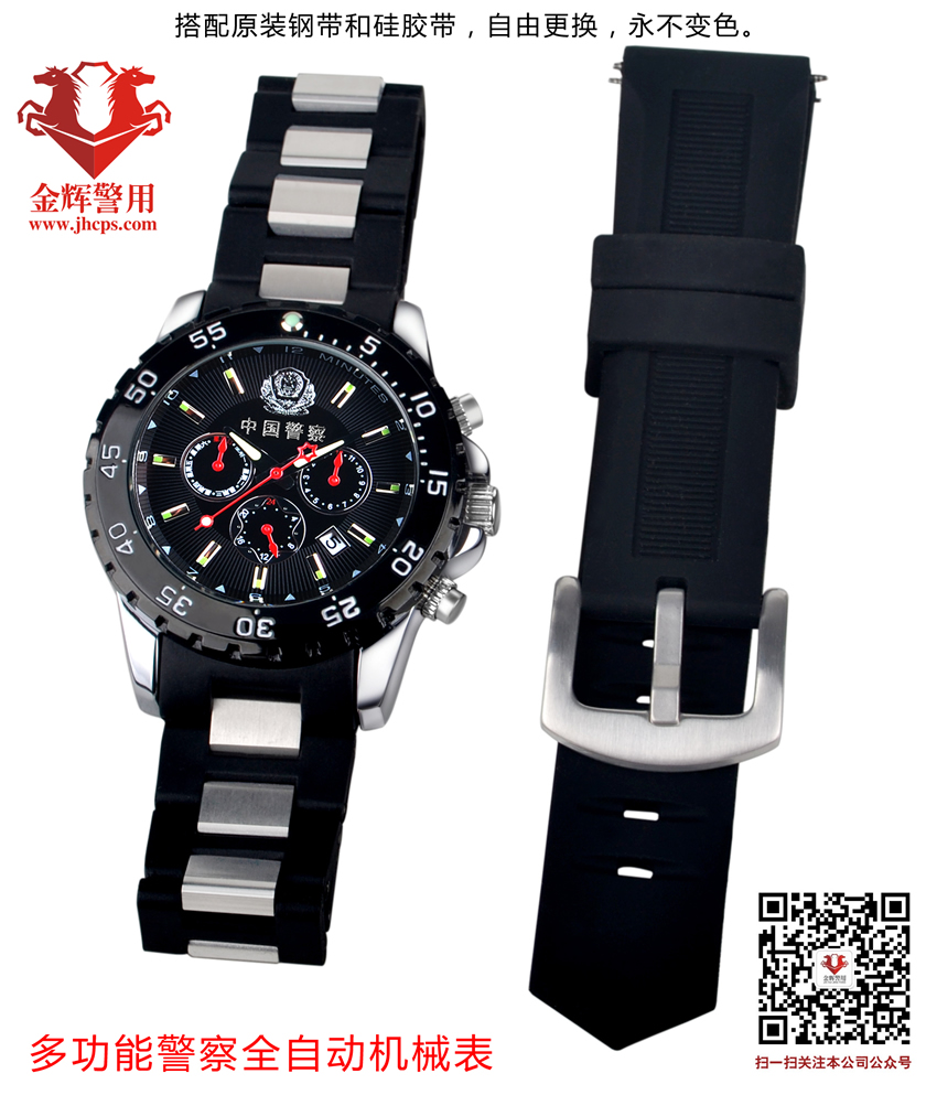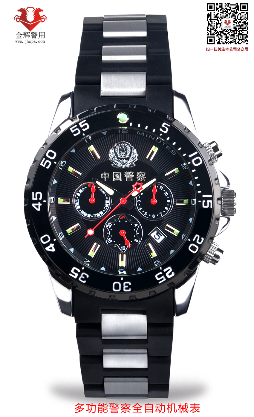 新款高檔警察全自動(dòng)多功能機(jī)械手表 正品警察不銹鋼硅膠表鏈?zhǔn)直?公安紀(jì)念配發(fā)手表