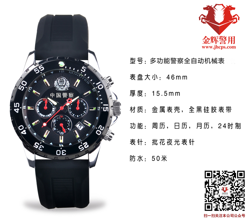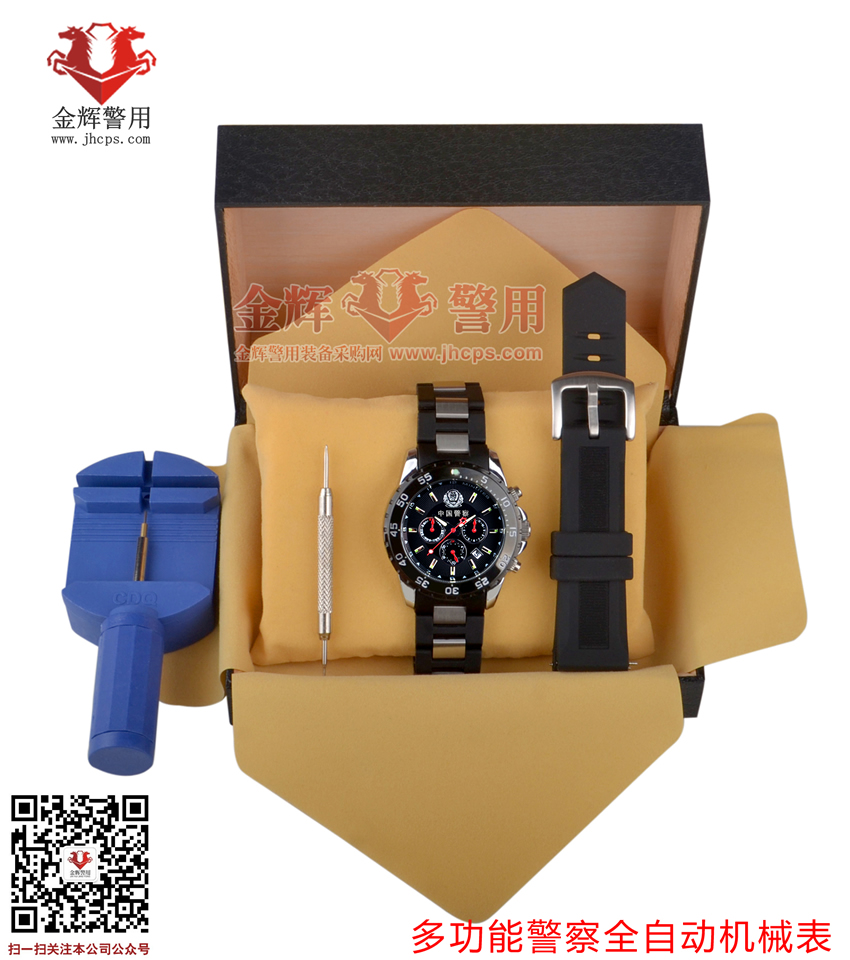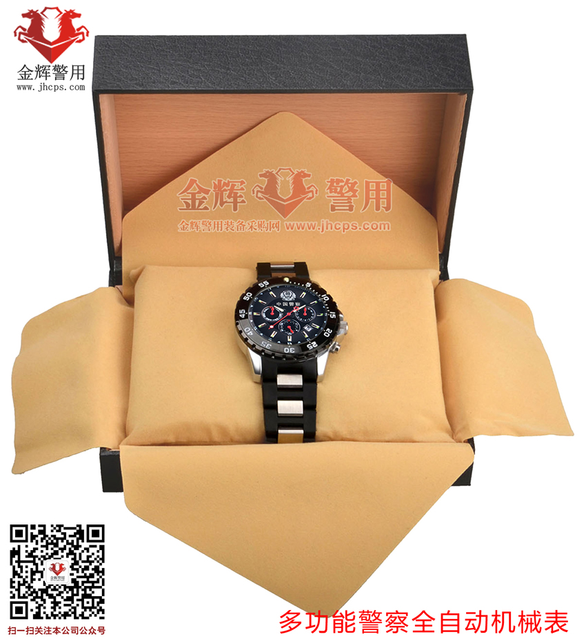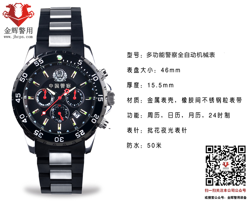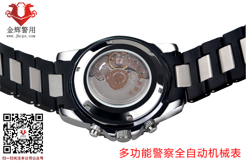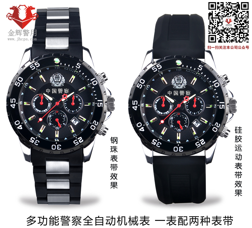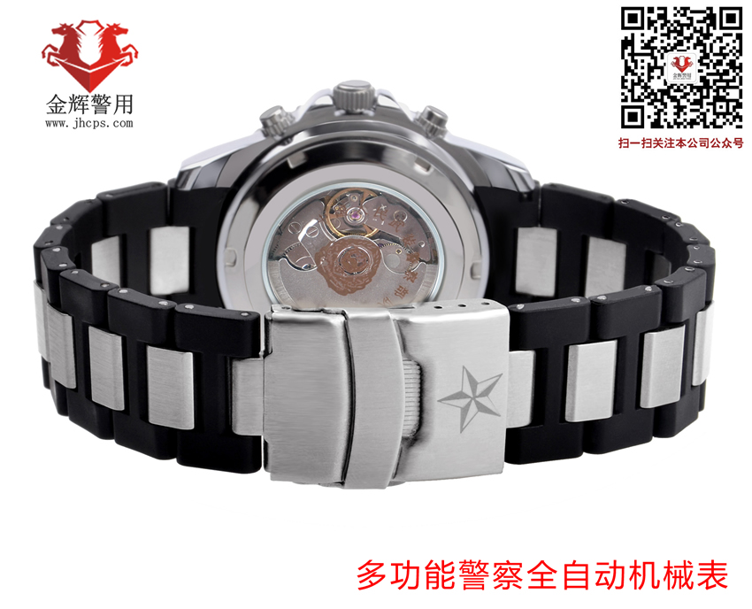 新款高檔警察全自動(dòng)多功能機(jī)械手表 正品警察不銹鋼硅膠表鏈?zhǔn)直?公安紀(jì)念配發(fā)手表
