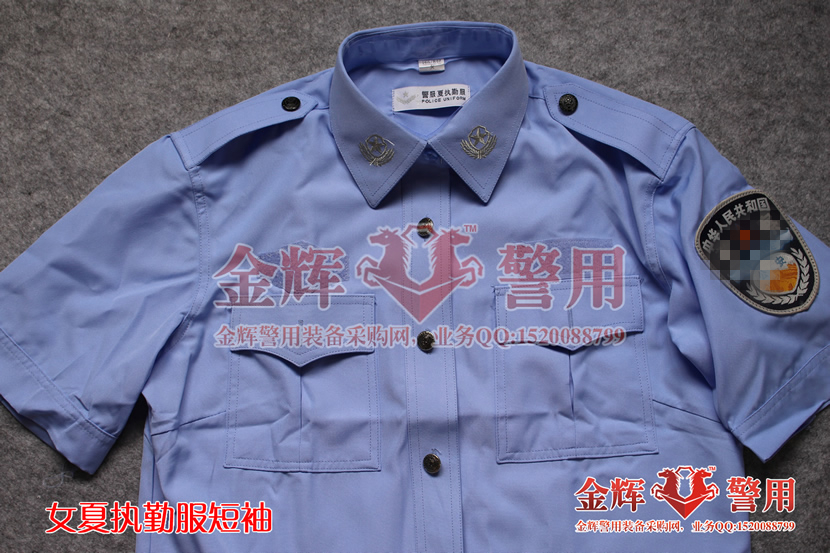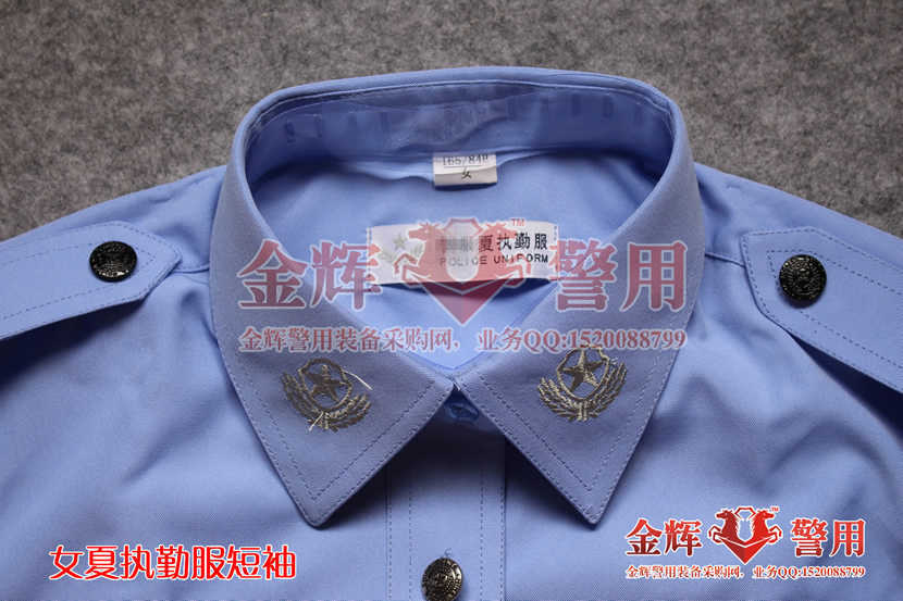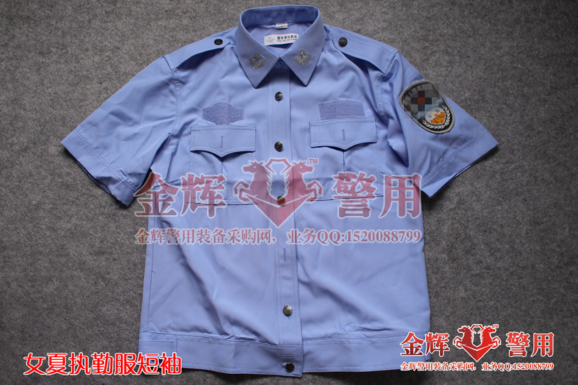 女警察夏短袖執勤服,也叫公安夏季短袖衫,女款警服比男款警服版型縮小,收腰,款式可以按不同身材配置。
