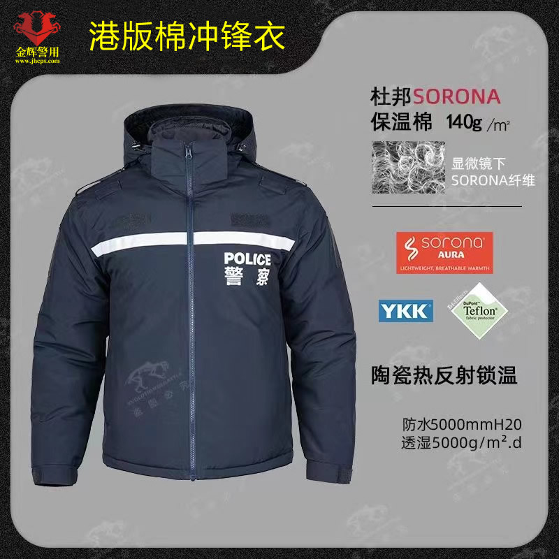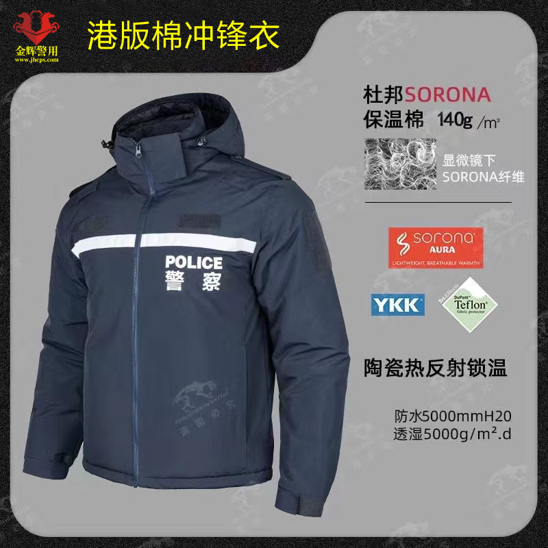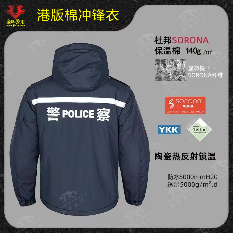棉服款港版警服沖鋒衣,防水,透氣,耐磨,前后反光字反光條,內(nèi)里填充為防寒杜邦棉,性價比高。