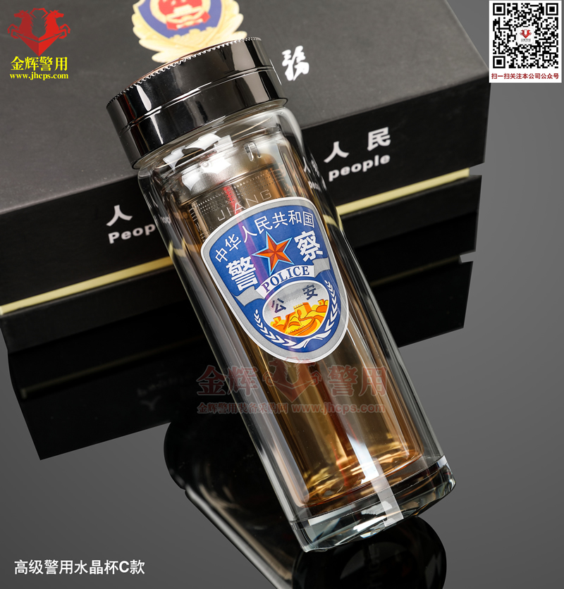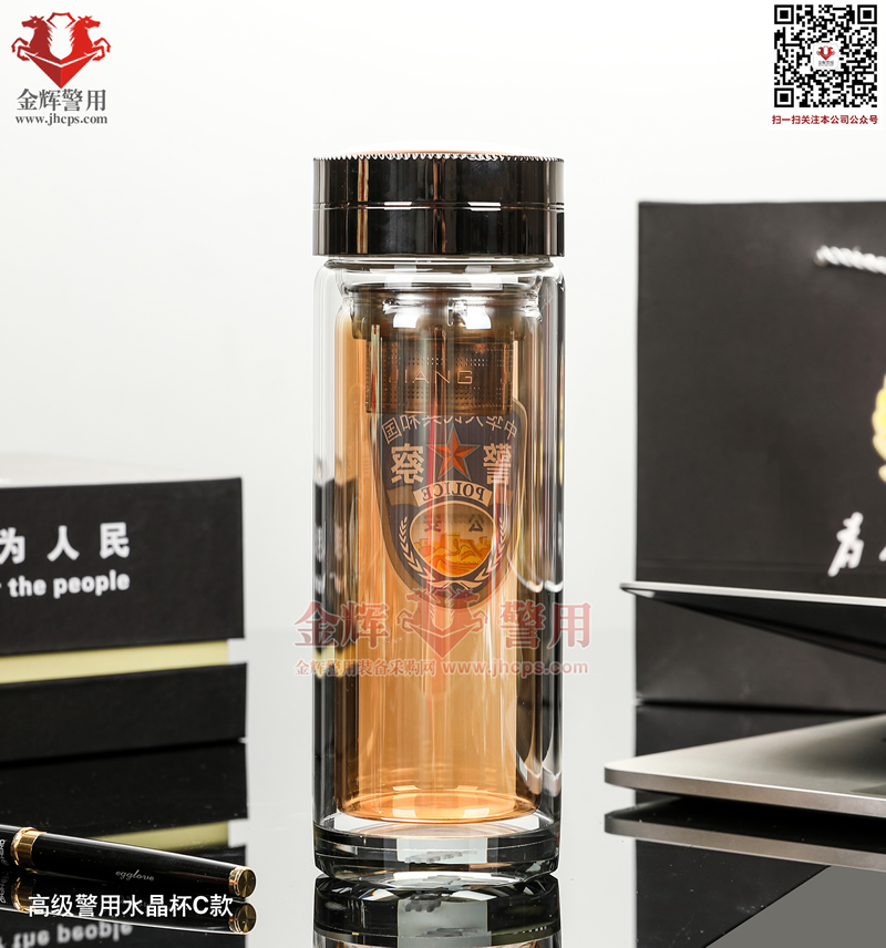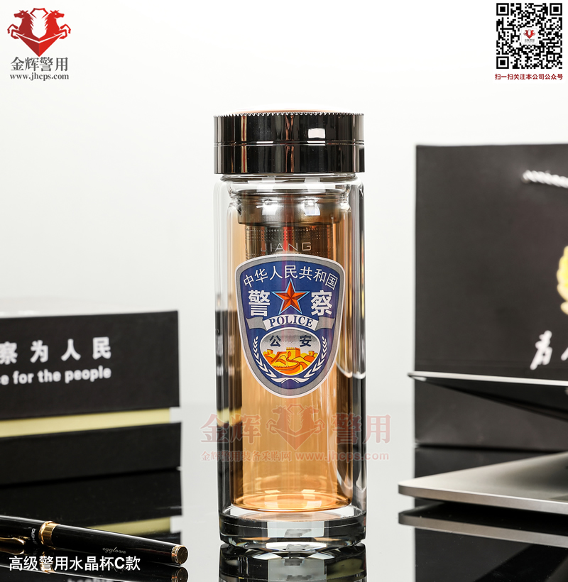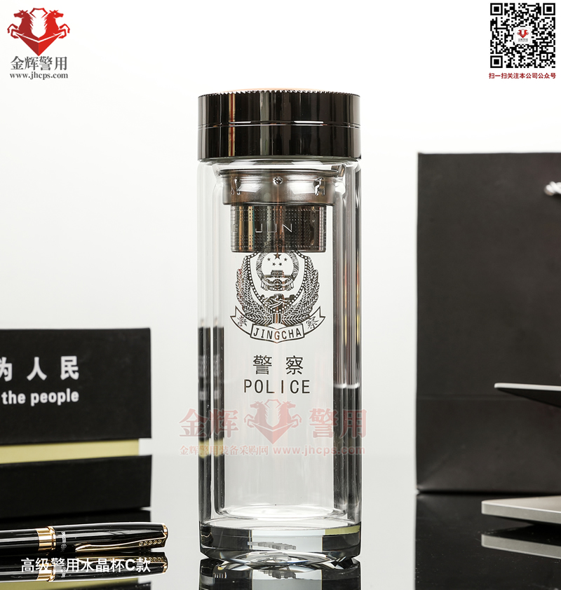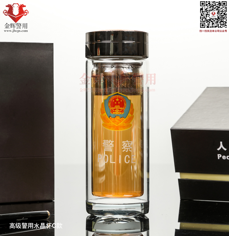 警察雙層真空保溫水晶生態(tài)杯,高鵬硅玻璃安全健康,不銹鋼濾網(wǎng)和PP水杯蓋,精美禮盒包裝。可選多種款式。