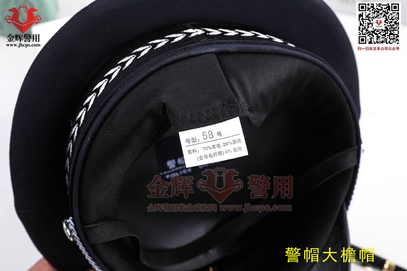 警用大檐帽技術參數:面料70%羊毛,26%滌綸(含導電纖維)4%氨綸