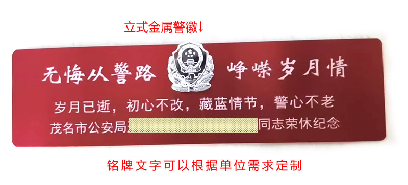 警察退休標識紀念相框,含配件需提供證件(來單位采購函)。