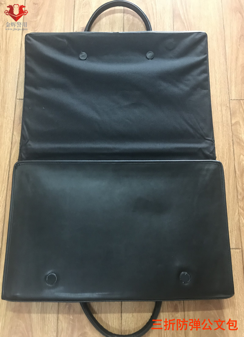 二、型號:FD-GD08-GWB型 三、產品介紹: 防彈公文包為政府要員、企業家及商界精英打造。日常使用如傳統公文包,可攜帶文件及個人物品。當緊急情況發生時,此款公文包能夠快速展開,在人體前方形成一道堅韌的護盾。 四、產品構造:由公文包外套、防彈芯片保護套及防彈芯片組成,防彈芯片由43層PE制成。 五、主要原料:高強聚乙烯纖維防彈材料及高性能纖維織物。 六、開啟時間:1秒 產品重量:4.7㎏ 七、防護等級:公安部《GA141-2010》的二級標準。 八、防護面積:0.52㎡ 九、產品規格: (1)原始尺寸:520㎜*350㎜ (2)展開尺寸:1000㎜*500㎜ (3)顏色:黑色 十、執行標準:公文包內含三片符合公安部《GA141-2010》的二級標準的防彈芯片,提供全方位防護,能夠抵擋各種手槍的襲擊。此外,此款產品重量輕,且配有快速展開系統,保證危急時刻迅速展開。公文包外部材料為優質純牛皮,防水、耐磨、抗拉扯。 備注:公文包可以按照客戶需求定制,防彈級別可以做成二級或者三級均可!外觀可以根據客戶需求定制,皮質,布質纖維均可!