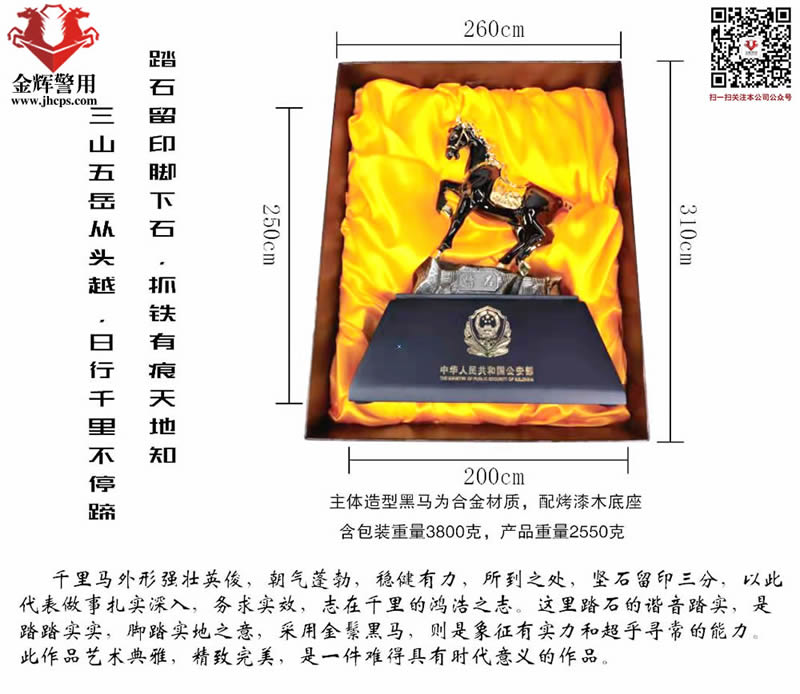 自古以來駿馬都是作為風水擺件,具有馬到功成、步步高升、龍馬精神之蘊意,同時也蓄意人民警察的浩然正義氣派。