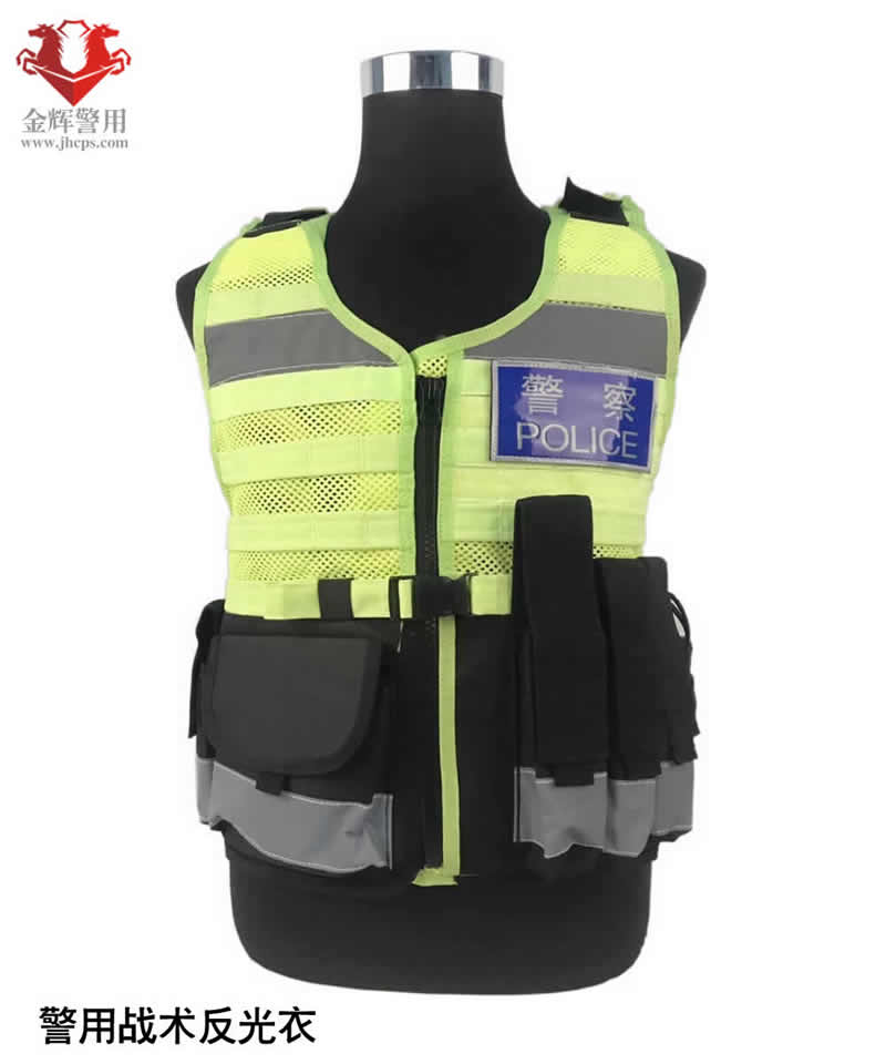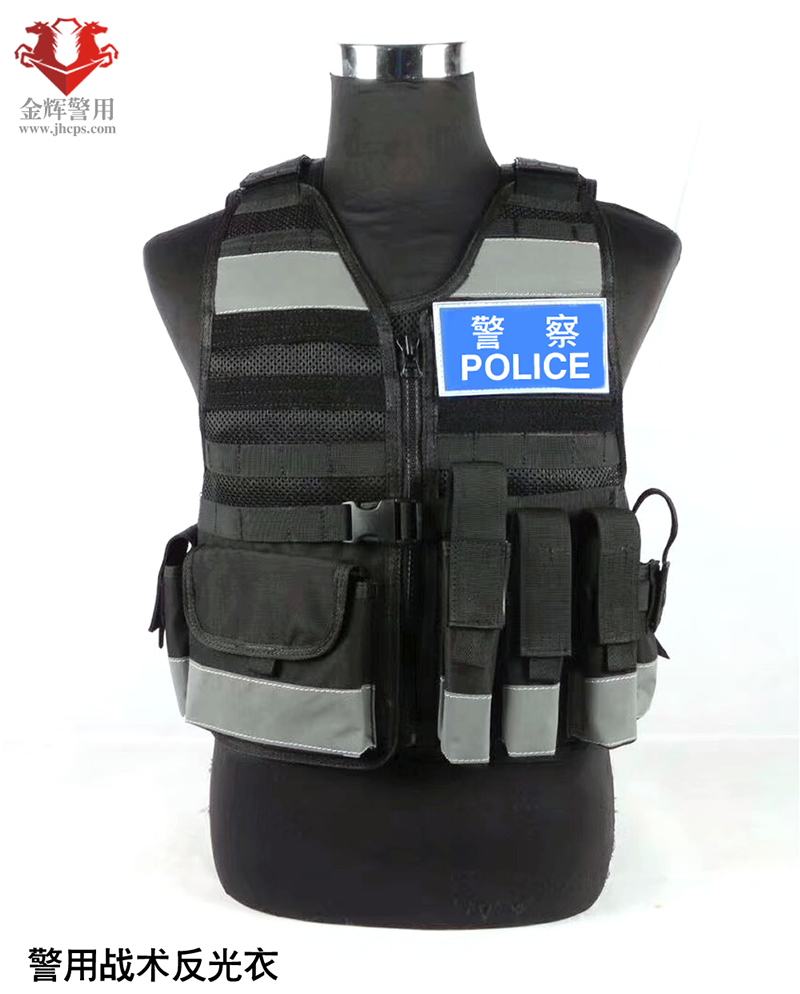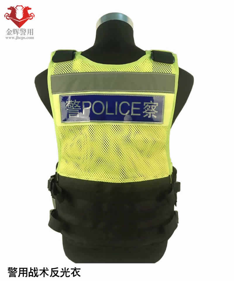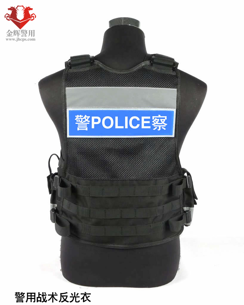 警用新款反光戰術背心主體采用耐磨防撕拉搖籃網制作而成、兜體采用1000D防水防阻燃牛津布制作而成;背心配有:雜物包(防割手套,急救包)、甩棍套、手電套、手銬套、催淚套、對講機套、更加方便警務執行任務、背心上面的反光標貼可以在夜間執勤時起到醒目的反光照射作用、背心前面后面都加有夜間反光作用的反光布、背心采用MOLLE系統、也可以隨意配備其他裝備、背心里面可以配備常規尺寸防刺內膽。型號為均碼。可調節松緊大小,適合任何體型。