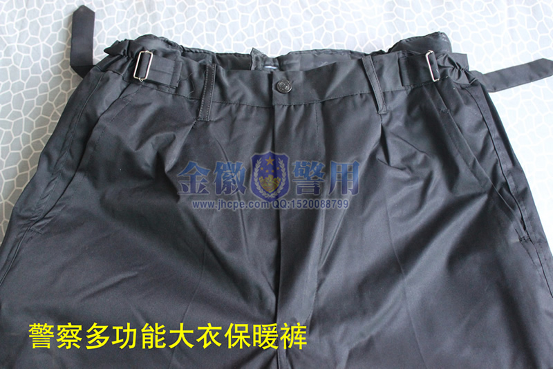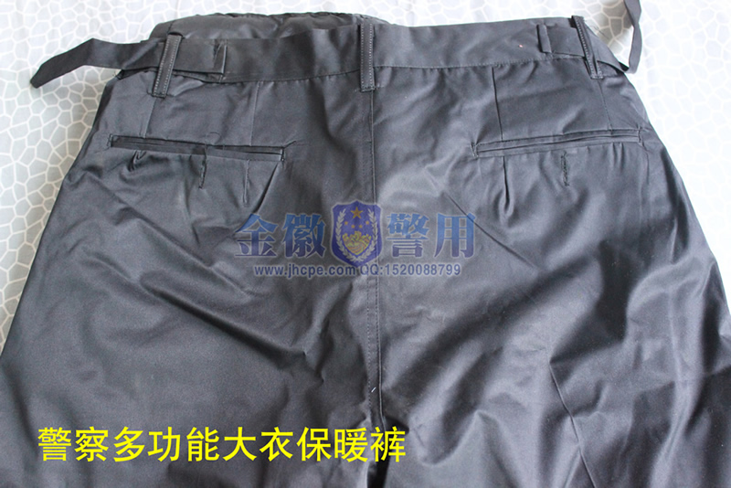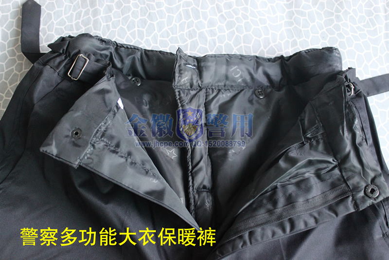 此款褲子是搭配警用多功能服(大衣)的,適合冬季雨雪天氣執勤穿著,保暖防風,防雪,防水.