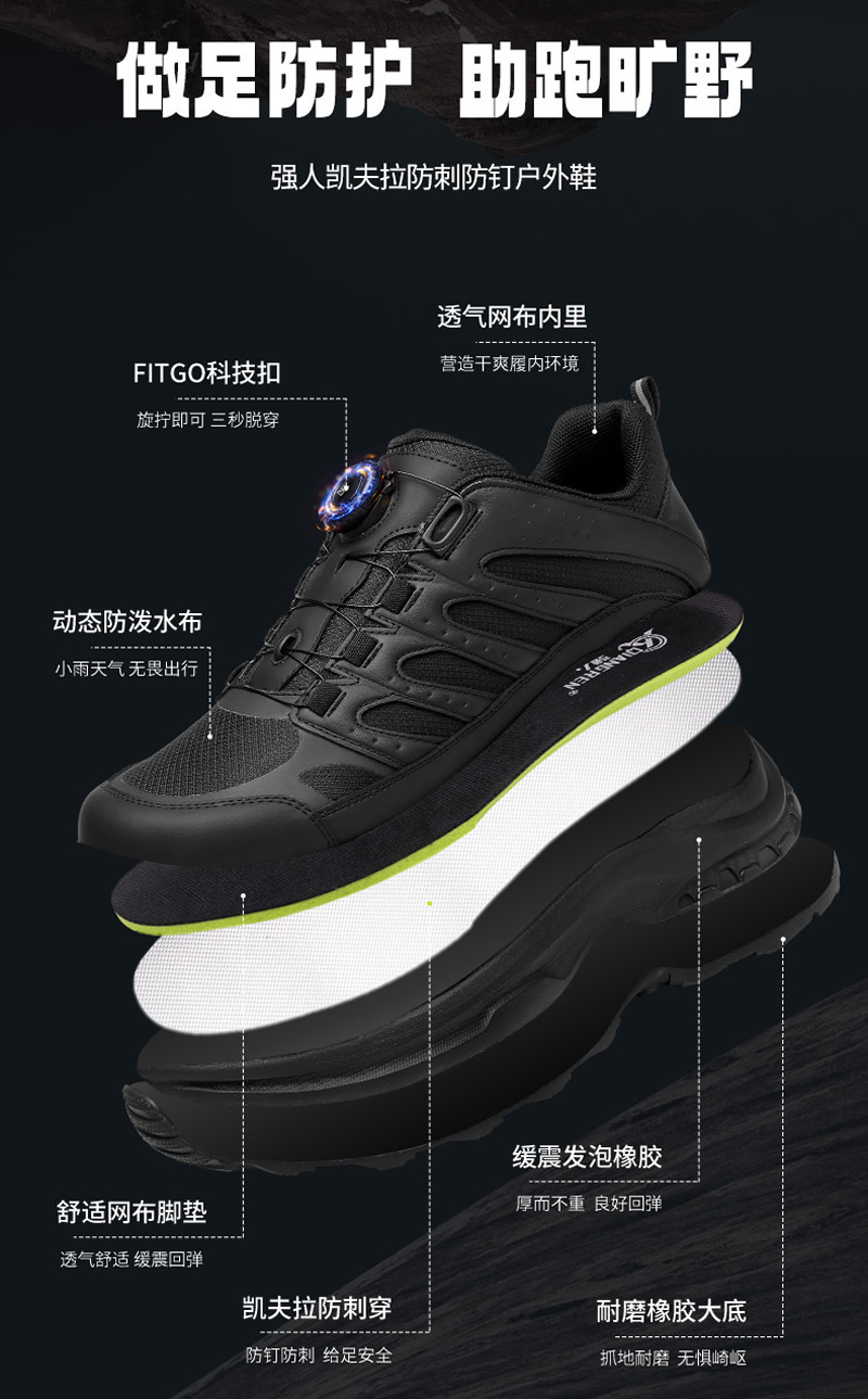 警用百搭休閑運動鞋,適合穿著執勤服穿著或者作訓服穿著。產品具備防水、防滑、防穿刺功能,快速扣設計,橡膠防滑耐磨大底,耐磨發泡中底,凱夫拉防穿刺夾層,高彈大力棉鞋墊,鞋面超遷+防水布,上腳美觀,運動休閑工作三不誤。詳細產品參數請瀏覽實物圖說明: