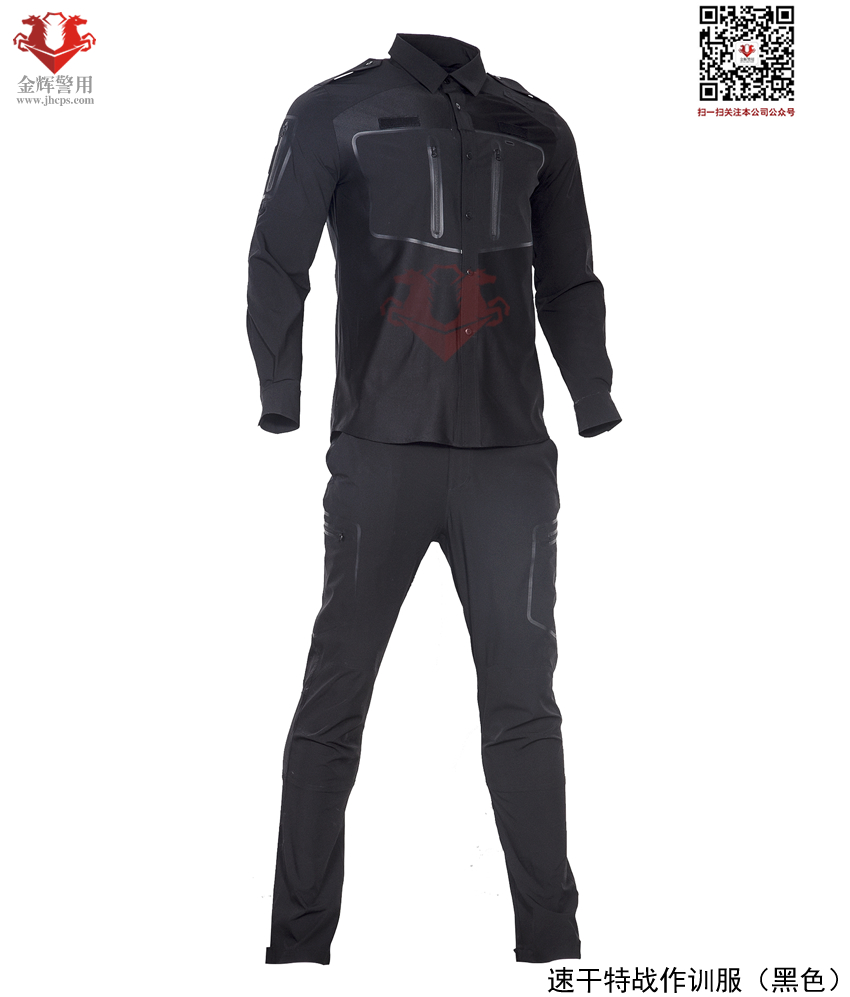 藏藍色特警速干特戰作訓服,可選同款黑色面料,上身美觀,適合公安特警,教官等日常用途。