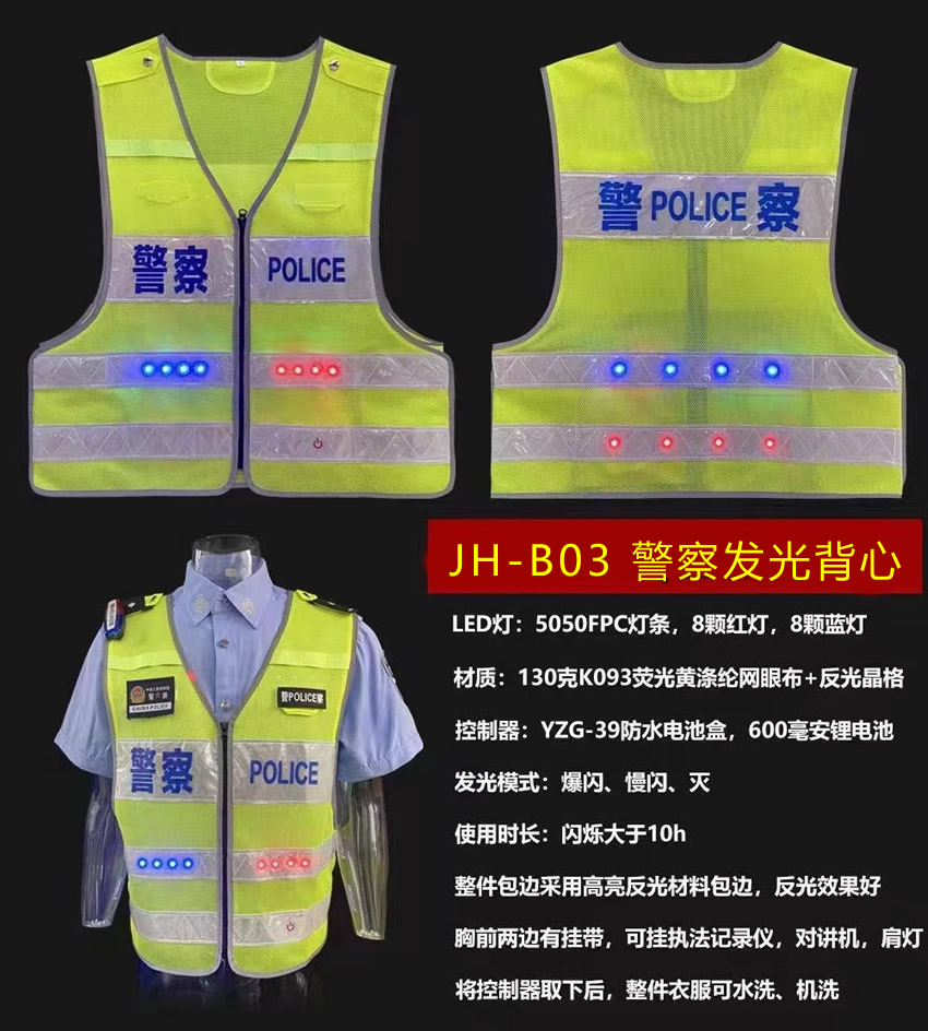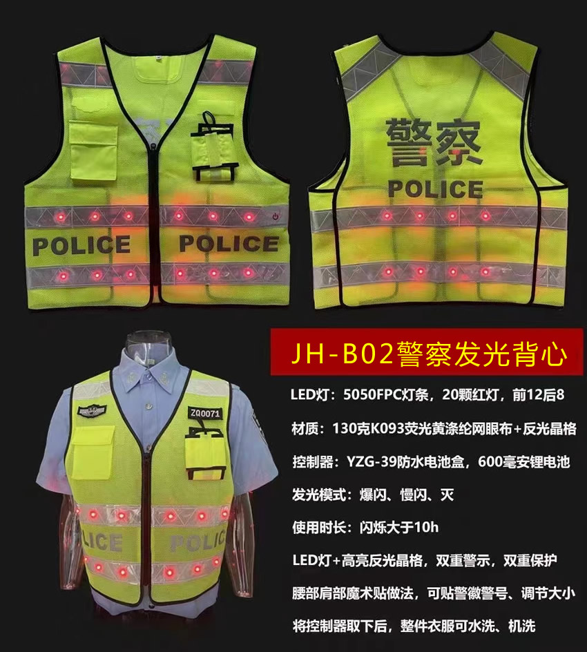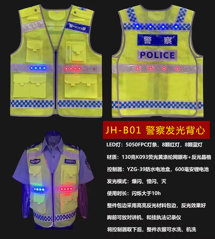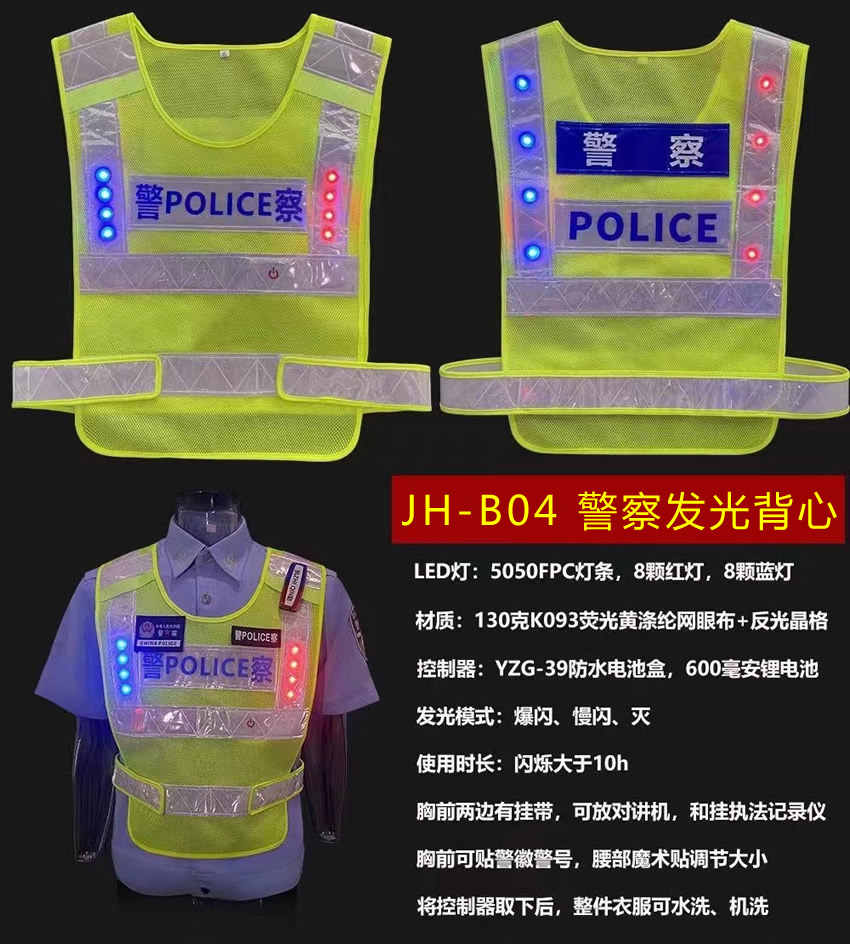 警用LED反光發(fā)光背心,警察執(zhí)勤反光衣可定制,多種款式滿足不同的執(zhí)法需求。
