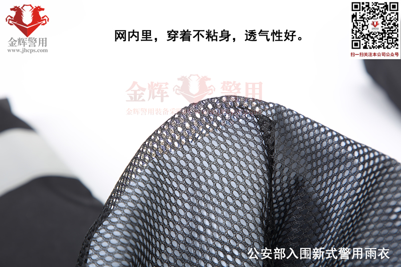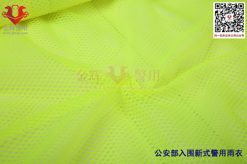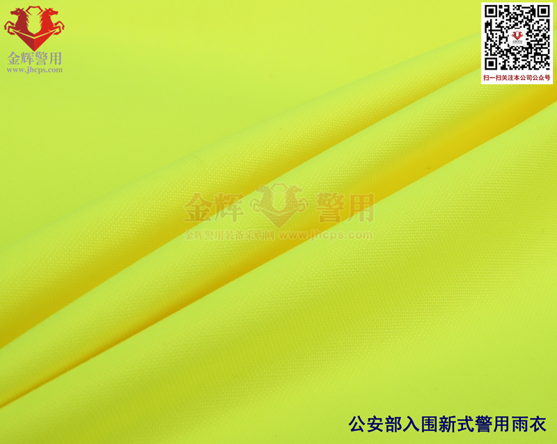 1、雨衣面料:300D牛津紡PU涂層,內襯是熒光黃網眼布,防水指數為8000MP以上。