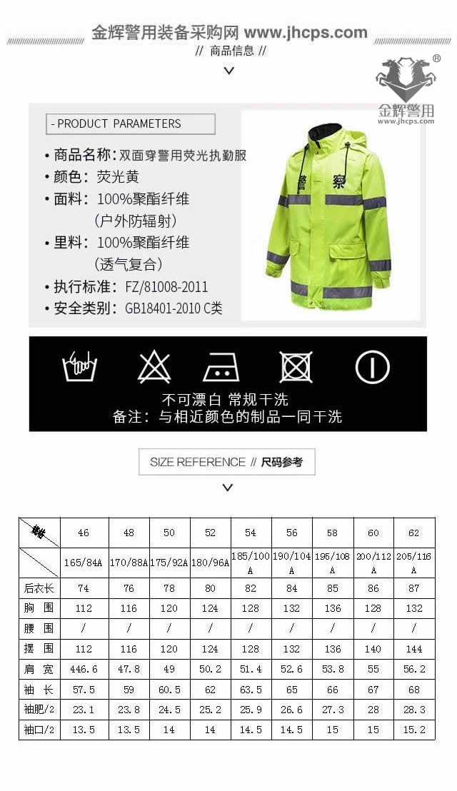 警用雙面穿熒光執(zhí)勤服 警察多功能熒光四季執(zhí)勤服 正品新款警用防水制服