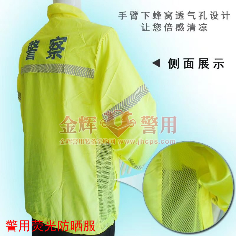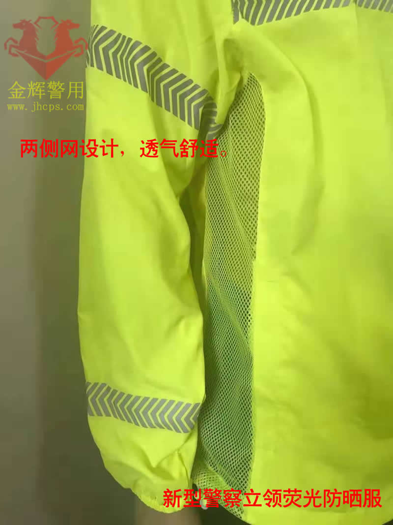 警用熒光防曬服防紫外線防曬.排汗透氣.輕柔舒爽.強力速干,立領設計適合交警戶外執勤或者警察防曬用途。