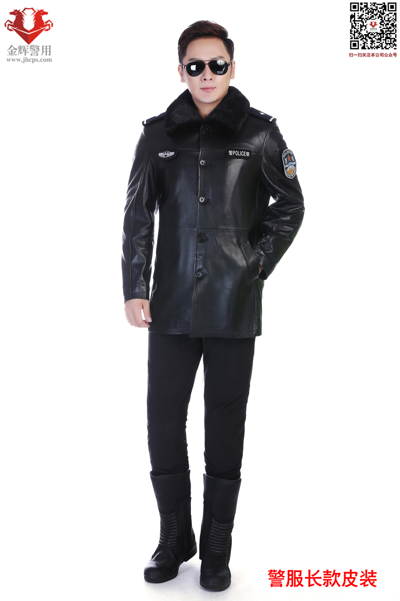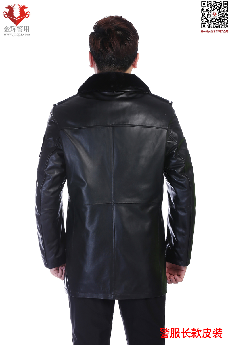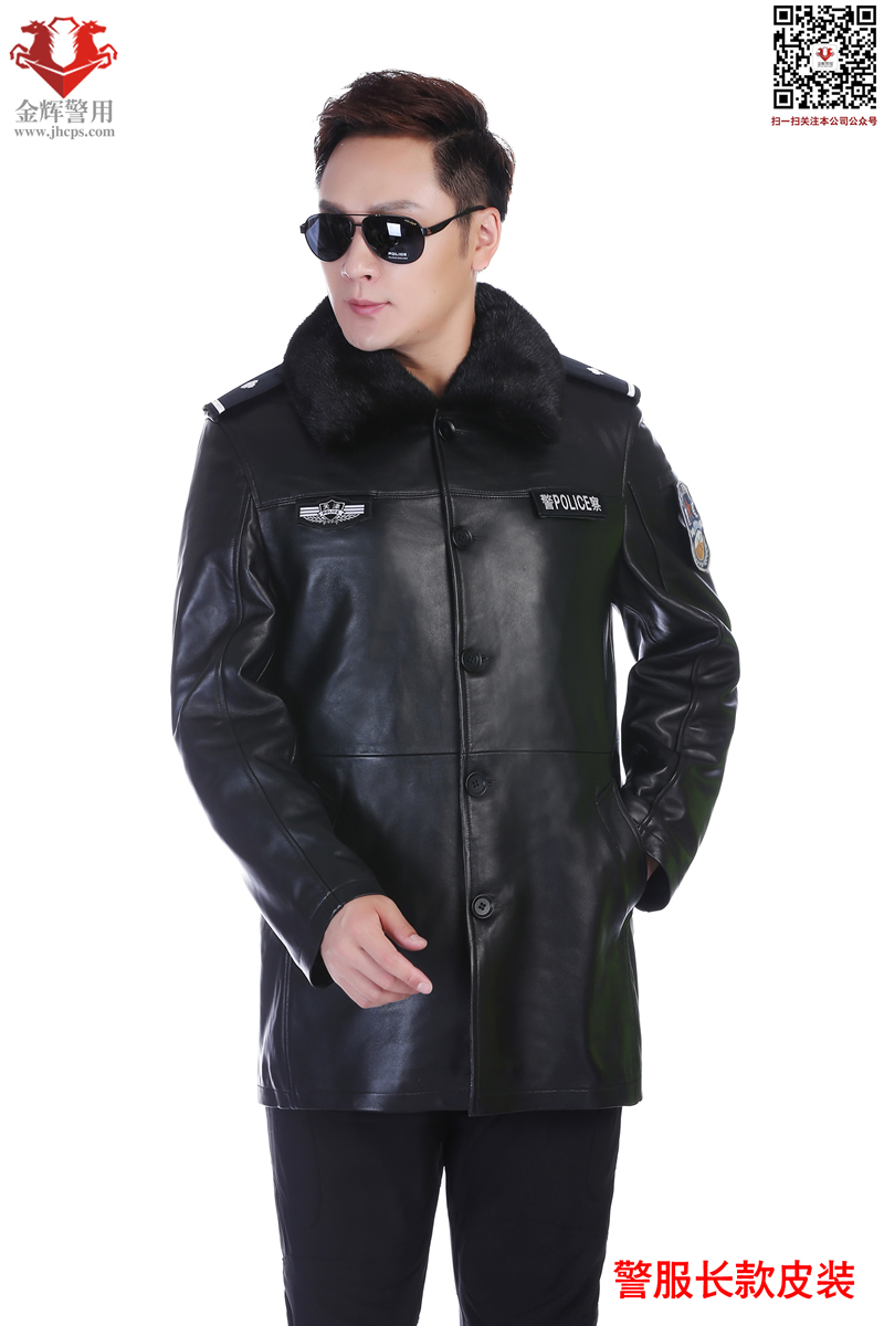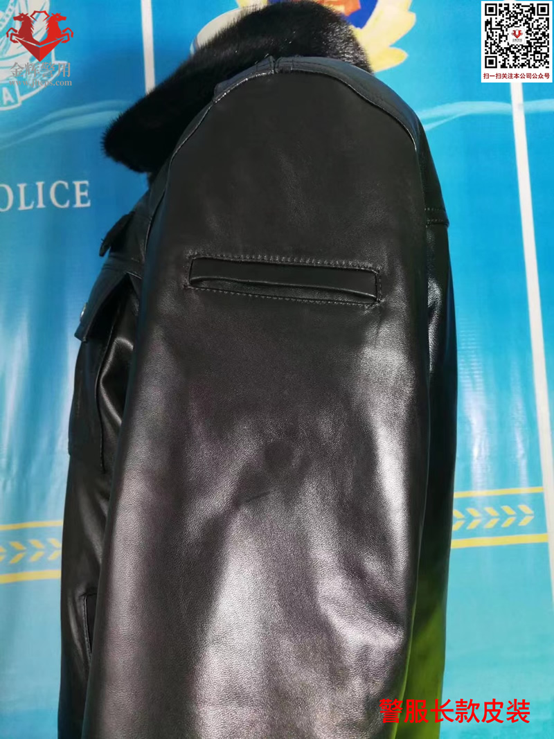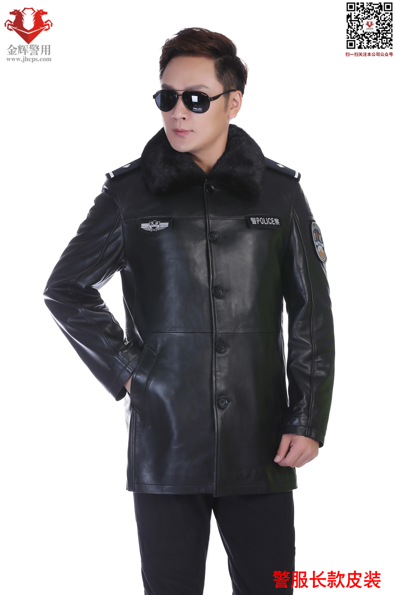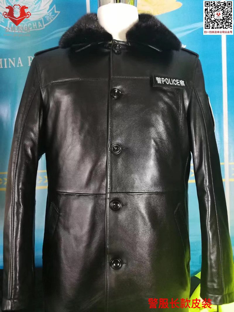 長款警服皮衣,采用純綿羊皮/黑山羊皮,內膽采用羊剪絨,配合動物毛領(獺兔/水貂),穿著防寒效果最佳,羊皮柔軟韌性好,經典耐用。