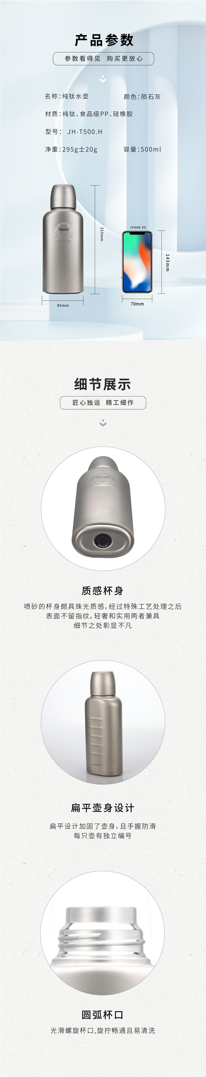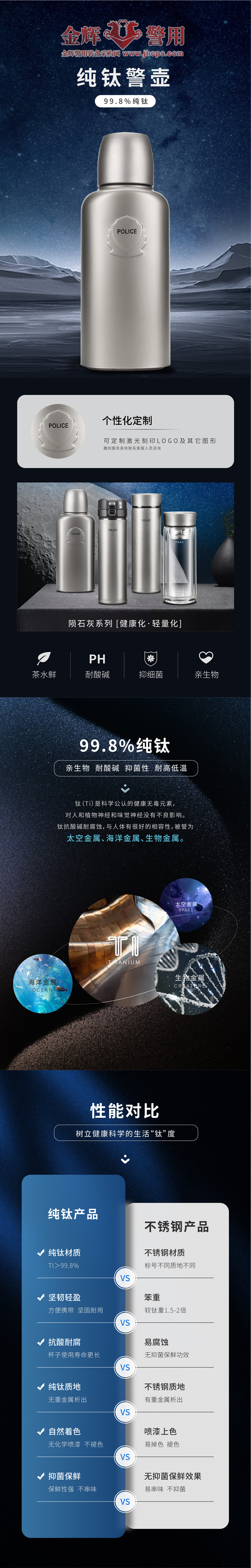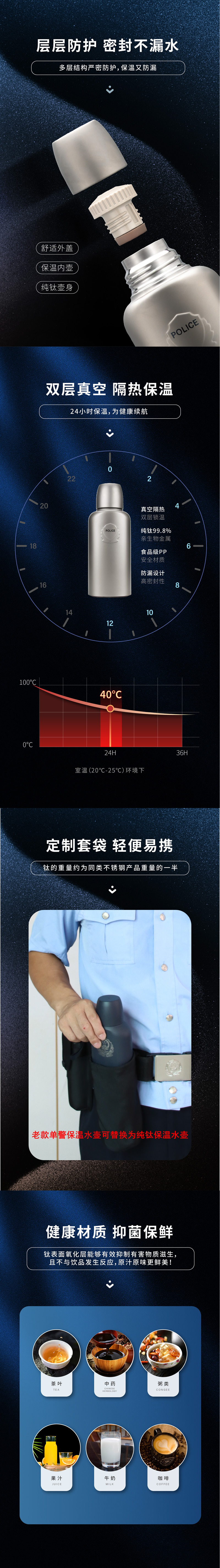 高檔警用純鈦執勤水壺,可放在警用多功能腰帶上,產品是目前為止最貴的一款警用高檔水壺,也是目前世界公認最好的金屬水壺材料。