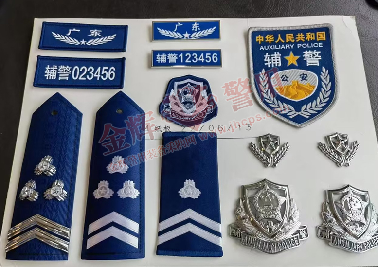 絲織胸徽: (1)絲織胸徽正面圖案由地區(qū)名稱或部門名稱字樣,五角星合橄欖枝組成。 (2)絲織胸徽由絲織版面、無紡粘合襯、粘扣帶A面(鉤面)、鎖邊線構(gòu)成。 絲織號牌: (1)絲織號牌正面圖案由中文“輔警”和6位阿拉伯?dāng)?shù)字組成。 (2)絲織版面、無紡粘合襯、粘扣帶A面(鉤面)、鎖邊線構(gòu)成 絲織帽徽: (1)絲織帽徽圖案是參照輔警金屬帽徽樣式而成的。 (2)絲織帽徽由絲織版面、無紡粘合襯、鎖邊線構(gòu)成。 金屬胸徽: (1)金屬胸徽正面圖案由地區(qū)名稱或部門名稱字樣,五角星合橄欖枝組成。 (2)胸徽由胸徽體和兩個(gè)鎖扣構(gòu)成,鎖扣由鎖扣扣體和扣釘構(gòu)成。 金屬號牌: (1)金屬號牌的牌號由兩位中文“輔警”和6位阿拉伯?dāng)?shù)字組成。 (2)號牌由號牌體和兩個(gè)鎖扣構(gòu)成,鎖扣由鎖扣扣體和扣釘構(gòu)成。 金屬領(lǐng)花: (1)領(lǐng)花正面圖案由五角星、盾牌及橄欖枝組成。 (2)領(lǐng)花由領(lǐng)花體、兩個(gè)螺釘合兩個(gè)螺母構(gòu)成,領(lǐng)花體為鏤空結(jié)構(gòu)。 金屬帽徽(大/?。?br /> (1)帽徽正面圖案由中華人民共和國國徽、長城、盾牌、松枝葉及帶有“輔警”和“AUXILIARY POLICE”字樣的飄帶組成。 軟式肩章: (1)軟式肩章為弧形肩章,輔警銜圖案,由版面上規(guī)定位置絲織提花的輔警銜標(biāo)識圖案構(gòu)成。 (2)軟式肩章由滌綸低彈絲提花圖案絲織布、熱熔粘合襯、熱熔膠片、塑料襯板、熱熔膠片、樹脂襯、底布、袢帶構(gòu)成。 (3)輔警銜標(biāo)識花紋圖案構(gòu)成要素為星徽和人字杠組合成不同輔警銜,星徽由五角星、圓圈及三個(gè)方向的光芒組成。人字杠是帶邊的呈130°直折條圖案。 套式肩章: (1)套式肩章的輔警銜圖案,由版面上規(guī)定位置絲織提花的輔警銜標(biāo)識圖案構(gòu)成。 (2)套式肩章由滌綸低彈絲提花圖案絲織布、熱熔粘合襯、熱熔膠片、樹脂襯構(gòu)成。 (3)輔警銜標(biāo)識花紋圖案構(gòu)成要素為星徽和人字杠組合成不同輔警銜,星徽由五角星、圓圈及三個(gè)方向的光芒組成。人字杠是帶邊的呈130°直折條圖案。 金屬肩章: (1)硬式肩章為弧形肩章,由硬式肩章板與其上規(guī)定位置釘綴的金屬輔警銜標(biāo)識件構(gòu)成。 (2)硬式肩章板結(jié)構(gòu)由粘膠長絲織帶、熱熔粘合襯、熱熔膠片、塑料襯板、熱熔膠片、樹脂襯、底布、袢帶組成。 (3)輔警銜標(biāo)識花紋圖案構(gòu)成要素為星徽和人字杠組合成不同輔警銜,星徽由五角星、圓圈及三個(gè)方向的光芒組成。人字杠是帶邊的呈130°直折條圖案。 臂章: (1)臂章正面圖案由“中華人民共和國”、“輔警”、五角星、帶有“AUX.POLICE”字樣的飄帶、長城、“公安”和橄欖枝構(gòu)成。