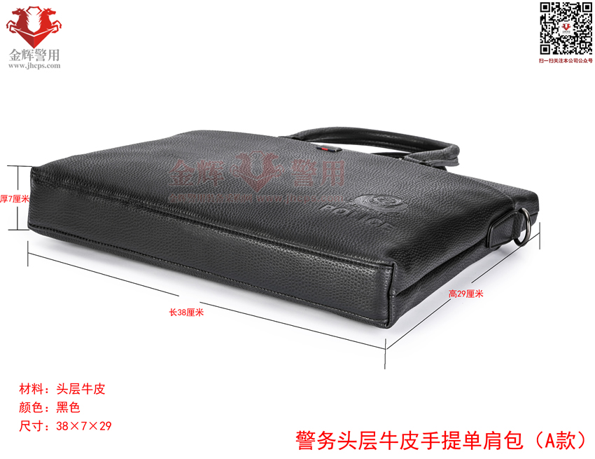 新款頭層牛皮手提包/單肩包,采用頭層牛皮,鋼印警徽工藝,防水耐用,結(jié)實。非常適合公安干警辦案差旅用途,大小合適,可存放筆記本或者檔案卷宗。可選A款和B款,實物高清圖歡迎欣賞。
