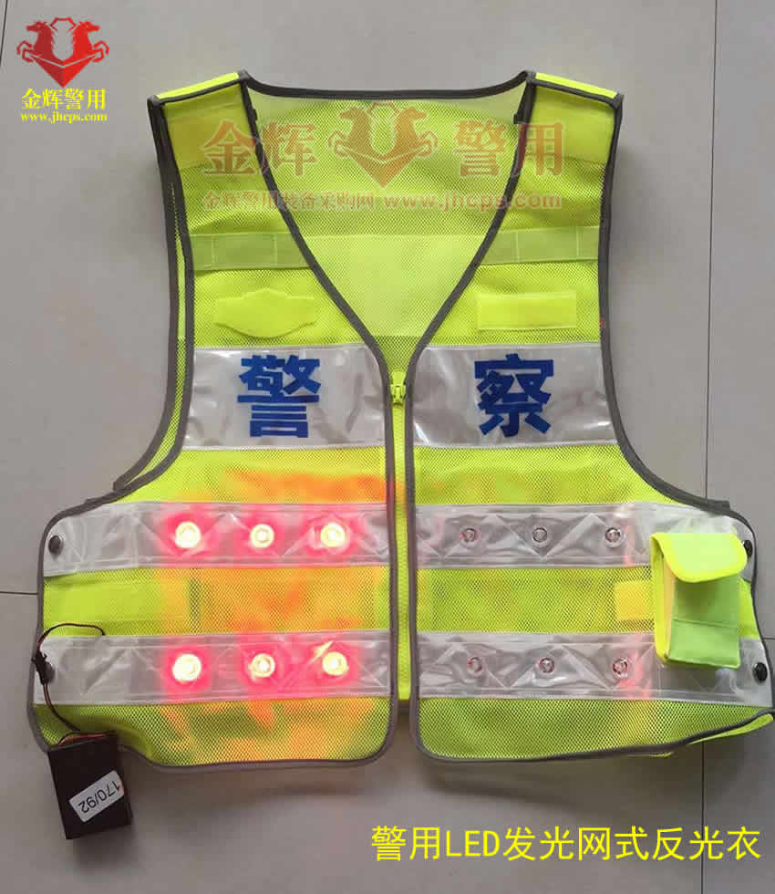 1.款式:前開襟馬甲式樣,用拉鏈拉合,前后身分別具有橫向反光條加LED燈帶;腰部和肩部為可調節設計,采用2道平行高粘力魔術貼加按扣,可自由調節大小,穿著更貼身。 LED燈參數:前邊12個紅光燈珠,后邊10個LED紅光燈珠,采用干電池供電。 2.面料:140g優質熒光黃尼龍網布,通透性好,穿戴舒適,視覺警示作用好;采用TC反光條包邊,反光性能好。 3.反光材料:采用PVC晶格反光條,色澤鮮艷、耐腐蝕、牢固耐用等特點,反光性能好。 4.反光性能:常溫20℃±2℃,入射角5°,觀察角12′條件下,反光帶的逆反射系數≥330cd/LX.㎡。 5.拉鏈:采用優質樹脂拉鏈,鋁質拉頭,美觀耐用。 6.功能:肩絆:前胸左側設計有肩袢可以掛肩燈和執法記錄儀等設備。 粘扣:前胸左右兩側設計有粘扣,可以粘貼胸徽胸號;粘扣左右居中,與反光條帶平行绱胸徽、胸號搭扣。 7.文字標志:采用PVC反光牌絲印要求文字,美觀醒目。可根據單位需求定制文字。