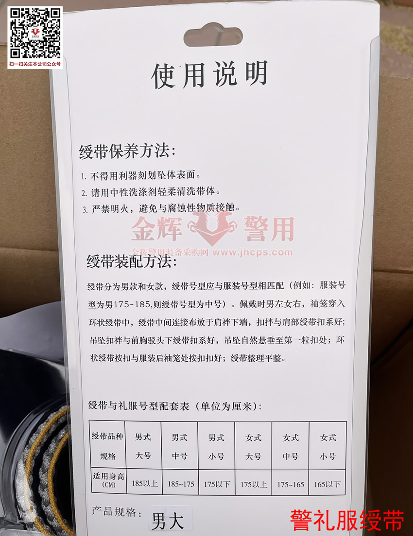 警禮服綬帶可選擇男女款式,可根據身材配置型號。