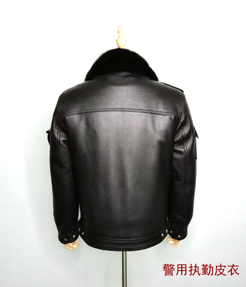 此款皮衣需要定做!定做時間3-6天不等,付款后開始定做,急件不接!不能接受者請繞道!新式現役99式正品警用執勤皮衣采用純山羊皮,皮質柔軟不開裂,整塊山羊皮縫制,不是拼接的,車工手藝非常到位。經久耐穿,不是所有的皮衣都叫警用皮衣。該皮衣內膽采用純羊毛剪絨,保暖性能是所有警服當中最好的,表皮防水、防雪、防風一直是東北一線民警的必備“奢侈”佳品。
