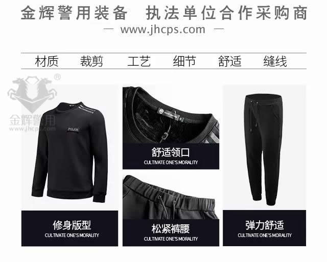 警察冬季體能運動衛衣套裝,內里加絨,絲滑柔順,穿著舒適,透氣保暖。