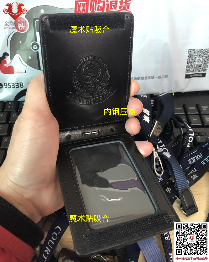 銀色徽警察證掛繩皮套,人民警察證工作證套,警察證皮套,可定制。