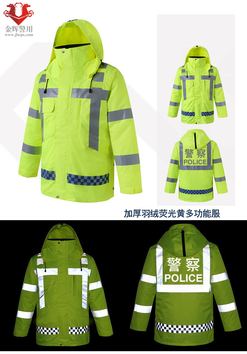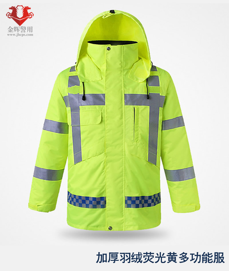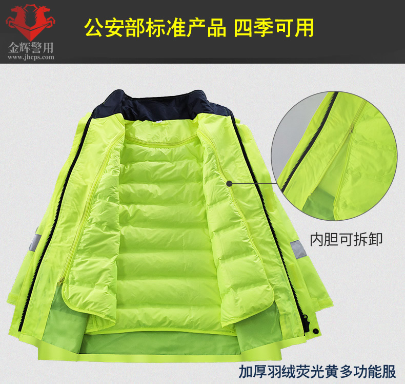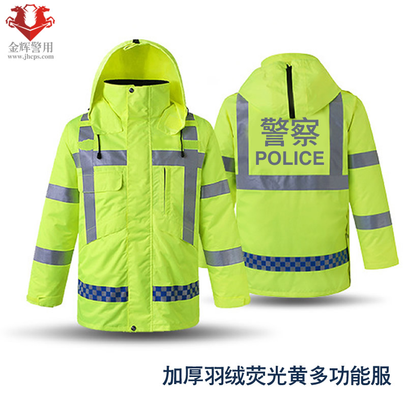 高檔警用羽絨防寒服 交警加厚熒光保暖執勤大衣 高速交警羽絨執勤大衣 熒光黃多功能服
