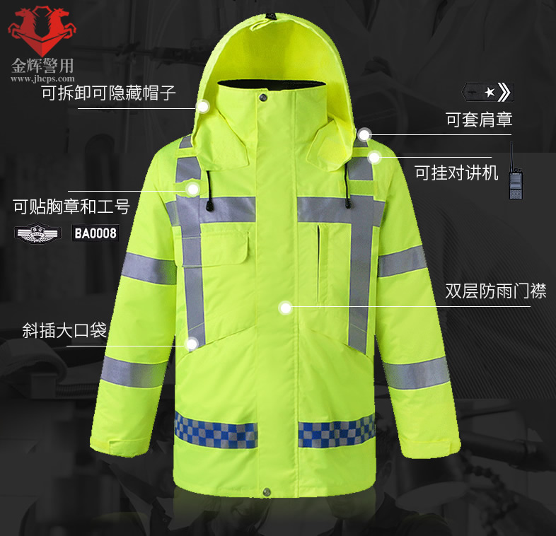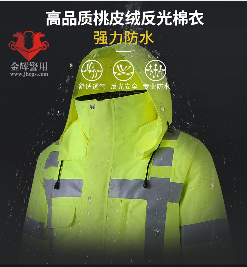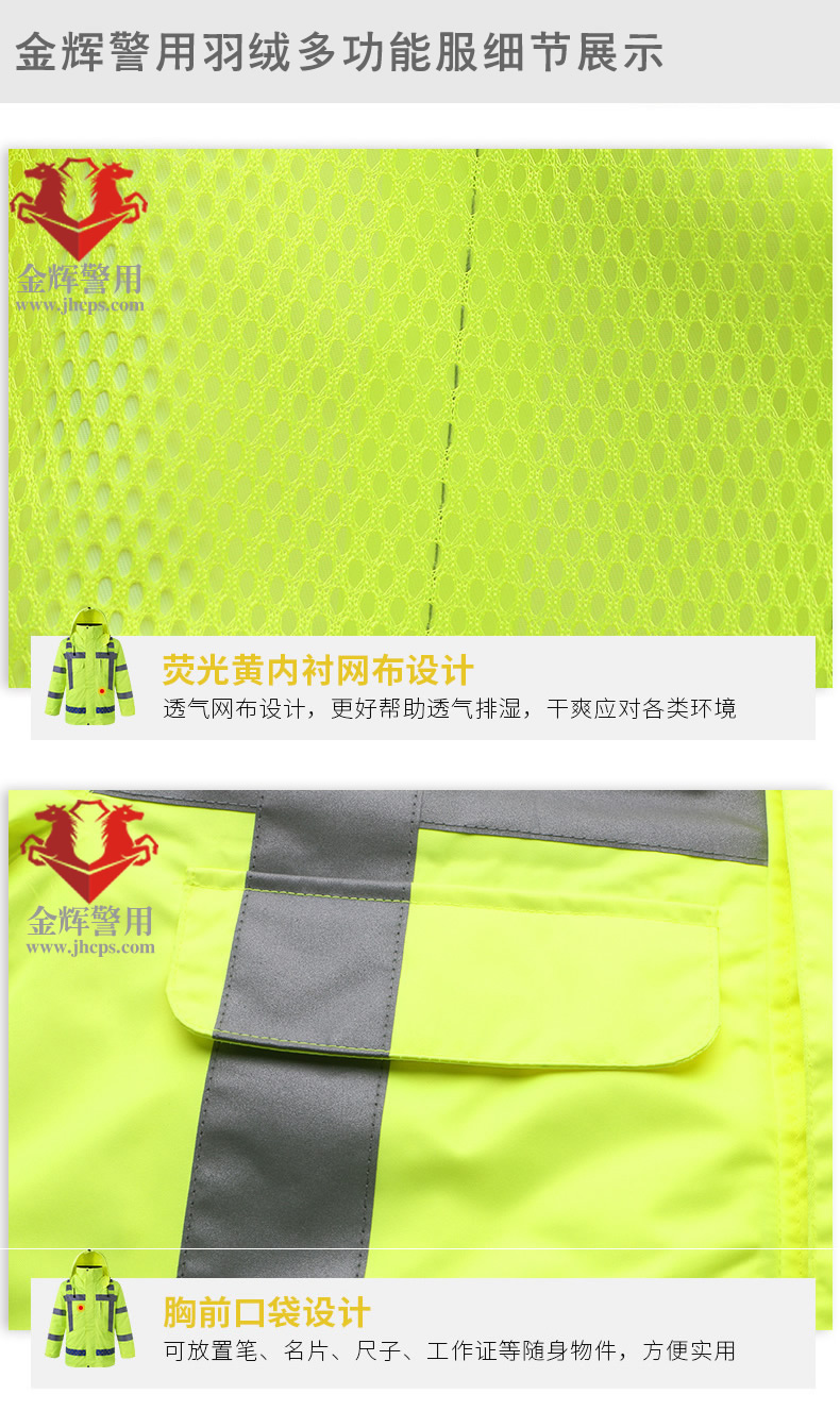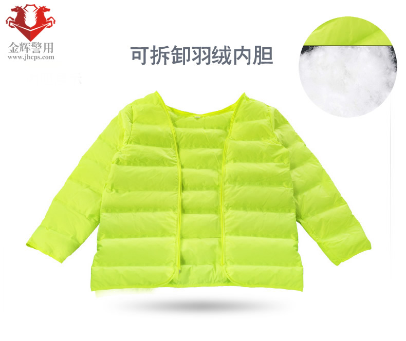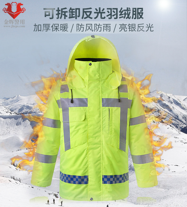 高檔警用羽絨防寒服 交警加厚熒光保暖執勤大衣 高速交警羽絨執勤大衣 熒光黃多功能服
