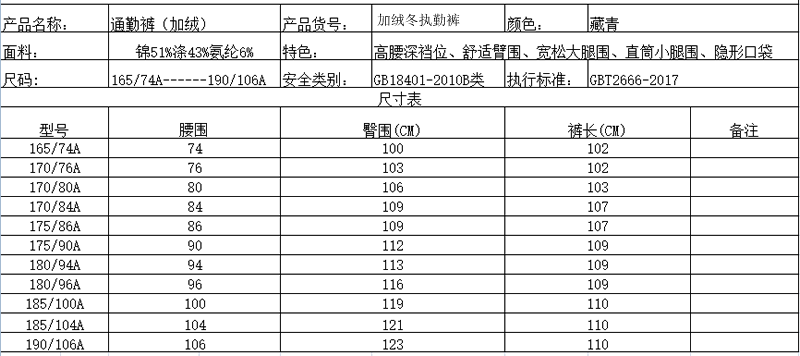 新式警服加絨通勤褲,適合春秋冬執(zhí)勤配套穿著,藏青色偏藍(lán)色,面料微彈力,上身修身美觀,警服A版,版型修身。 產(chǎn)品特色:高腰深褲襠位,舒適臀圍,寬松大腿圍,直筒小腿圍,隱形口袋,修身效果好,相比B版的大褲腿,A版是大部分干警量體版型。更多使用產(chǎn)品關(guān)注金輝警用裝備官網(wǎng)www.shanxiyouqi.com.cn 面料成分:錦51%,滌43%,氨綸6%,耐色牢固,不掉色,不起球。 尺碼可選多種,具體參考尺碼表。 安全類別:GB18401-2010 B類 執(zhí)行標(biāo)準(zhǔn):GBT2666-2017 優(yōu)