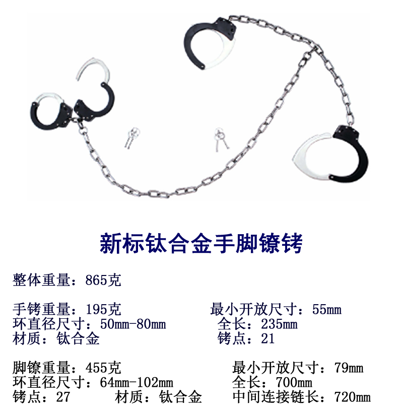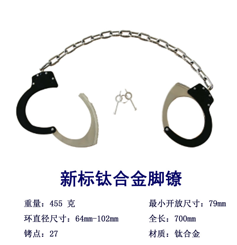 公安部入圍新標腳鐐,鈦合金材料,可選鈦合金腳鐐,鈦合金手腳鐐銬。高端警用防逃脫犯人押運裝備。