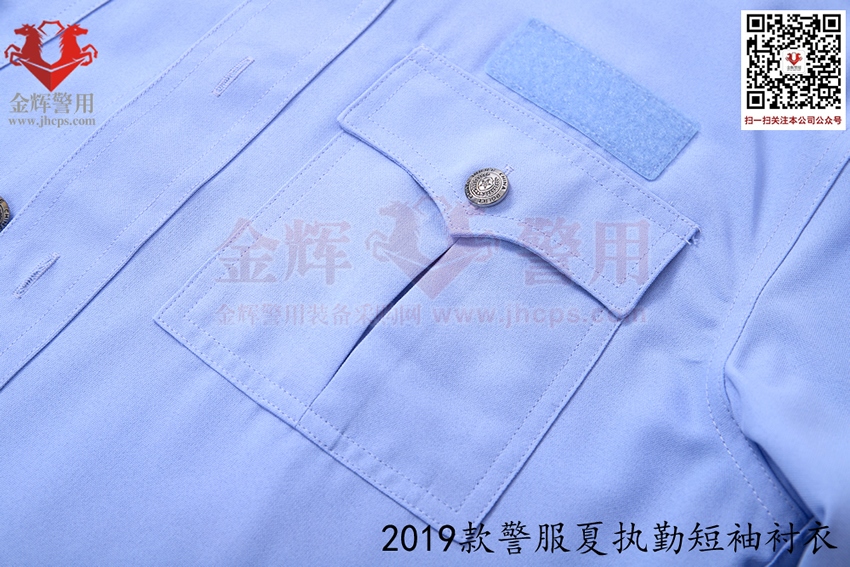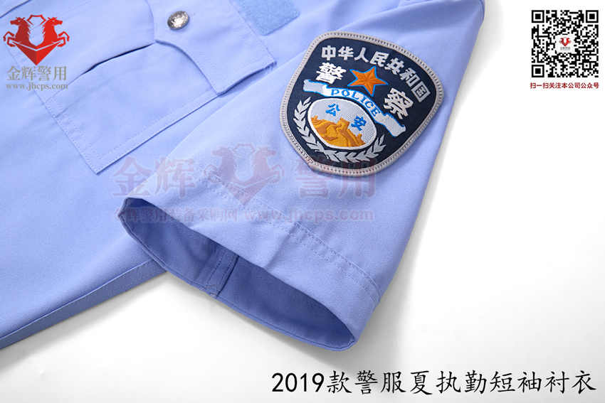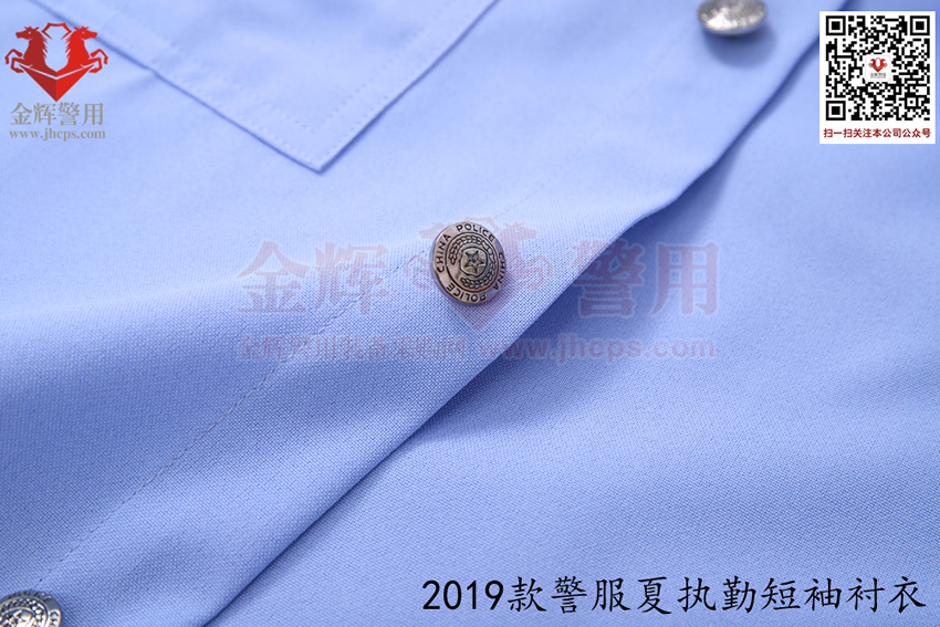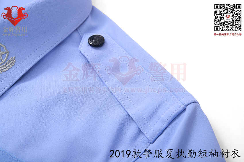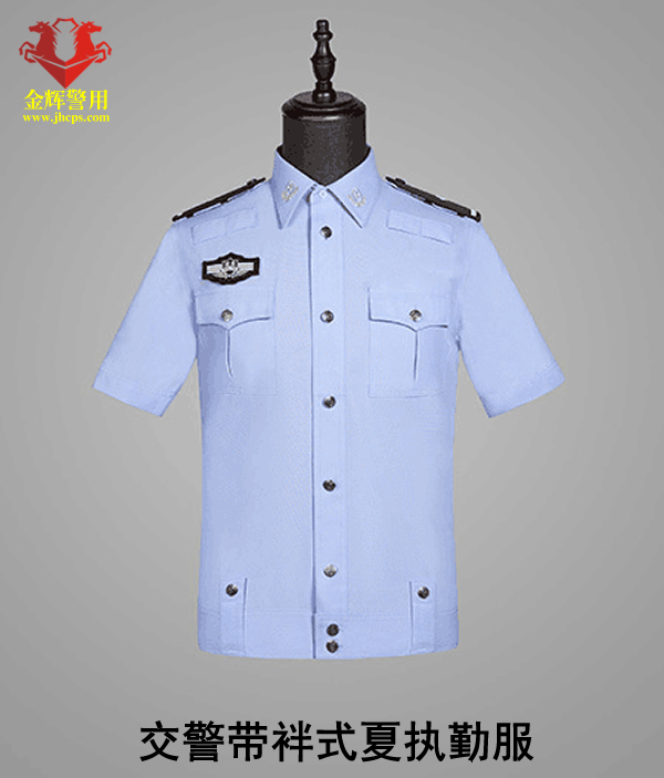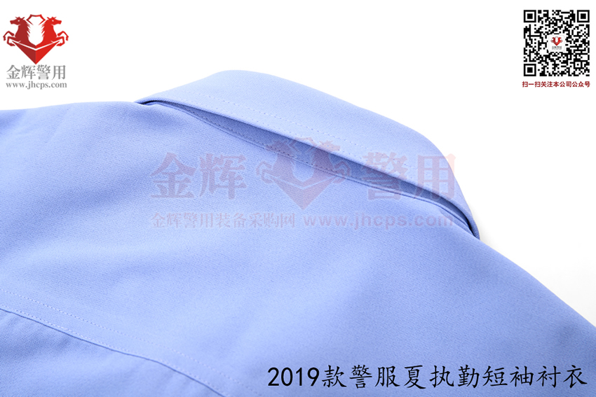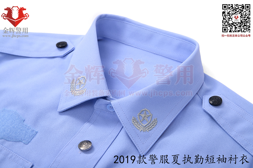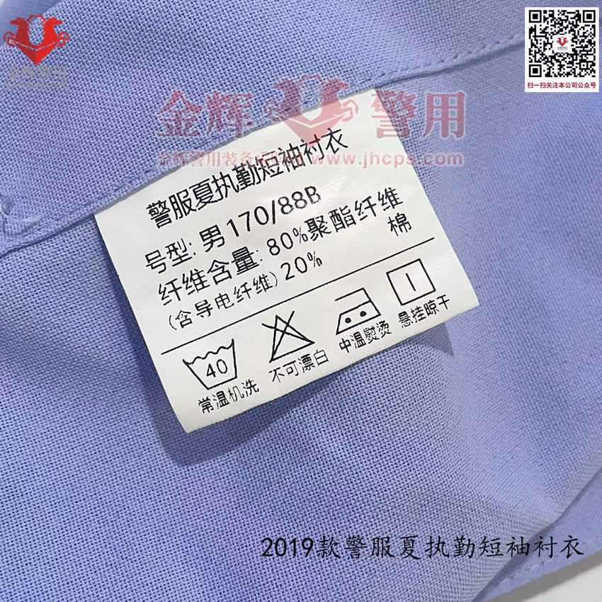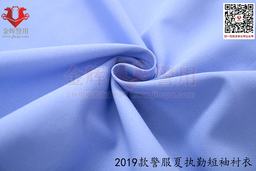 2019款交警帶袢式夏執勤服,也是2025年目前最新款警服,19式警服夏執勤服主面料采用滌棉平紋布,其中纖維含量:聚酯纖維80%,棉20%,含導電纖維;經向:323dtex,192dtex多異防透聚酯纖維與131dtex棉滌混紡紗并線,間隔含導電纖維,緯向:323dtex,192dtex多異防透聚酯纖維與131dtex棉滌混紡紗并線;單位面積質量:160g/㎡