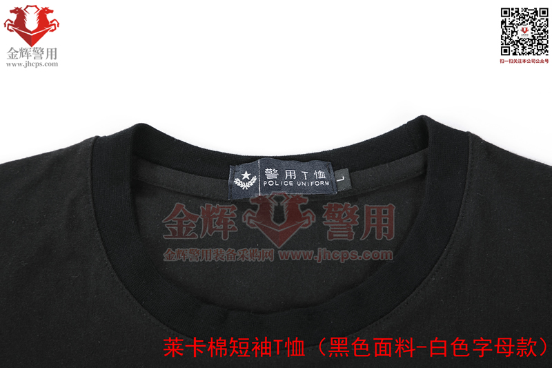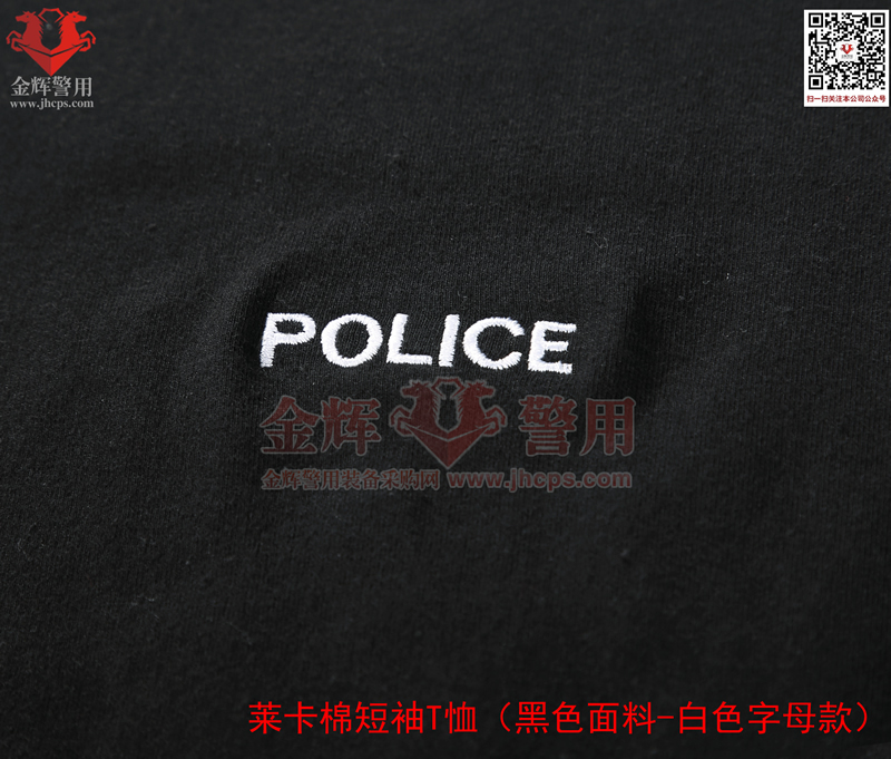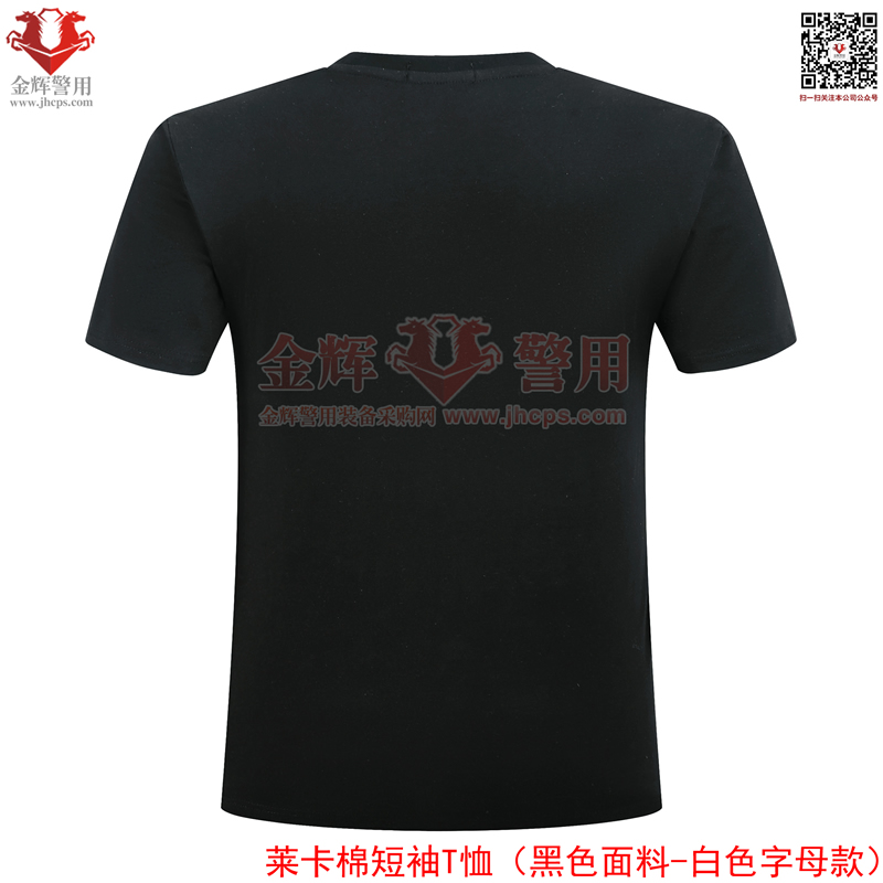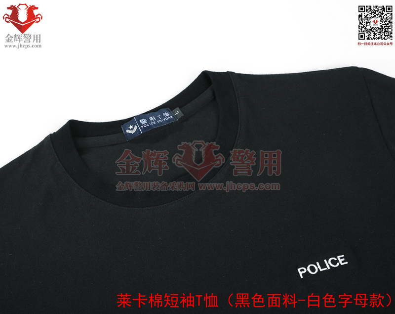 警用圓領(lǐng)針織短袖T恤衫 萊卡棉警服T恤 警察制式訓(xùn)練T恤 白色刺繡POLICE字母