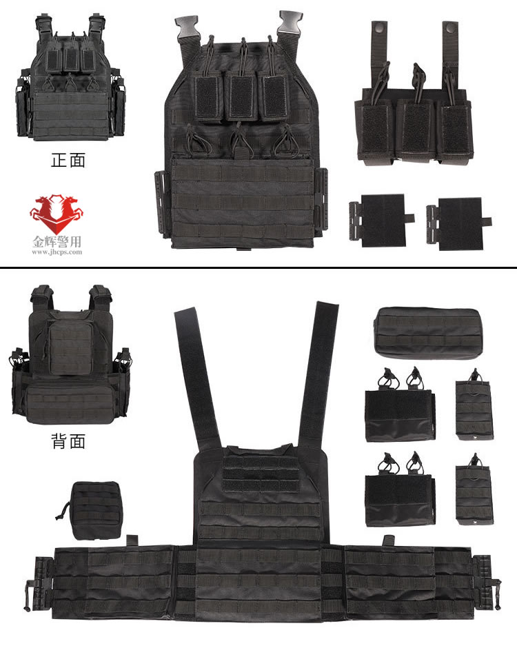 模塊化戰術背心主要特點是可以按需求組合掛件,粘貼統一標志,并且按出警現場形式搭配防彈插片。