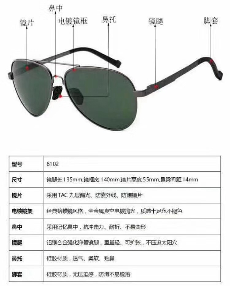 材質:鋁鎂合金記憶金屬鏡框TAC偏光鏡片