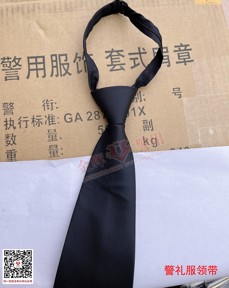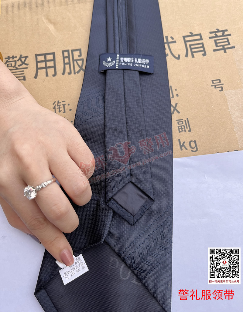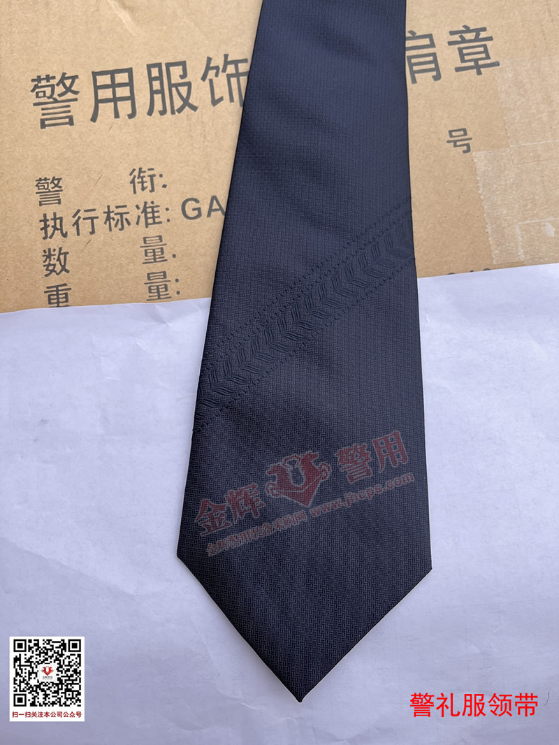 警禮服專用領帶,顏色和普通警用領帶雖然材質相同,但是外觀和顏色不同,普通警用領帶為藍色,禮服領帶為藏藍色。無警徽圖案,實物如圖。禮服領帶不配專用領帶夾,領帶夾使用原來警用領帶夾。