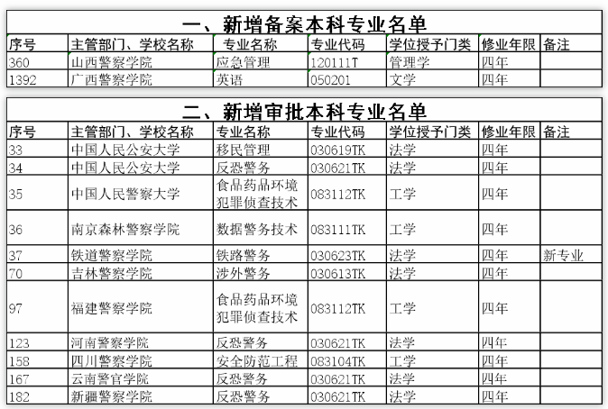 金輝警用裝備采購網分享消息:教育部印發《關于公布2021年度普通高等學校本科專業備案和審批結果的通知》(教高函〔2021〕14號),正式公布2021年度普通高等學校本科專業備案和審批結果,10所警校新增11個專業。
