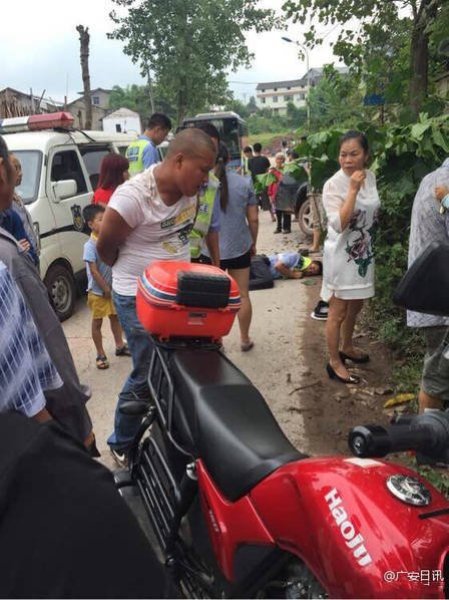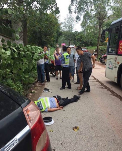 四川交警查處違章車輛被司機撞飛,警察受傷倒地。
