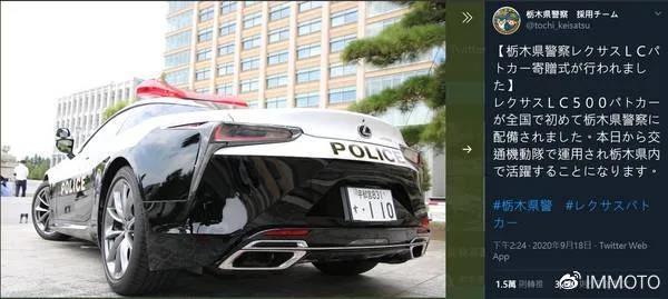 而近日在日本,一個名叫栃木縣的地方,一輛雷克薩斯LC500h被噴涂上警用涂裝,正式成為栃木縣警車一員。