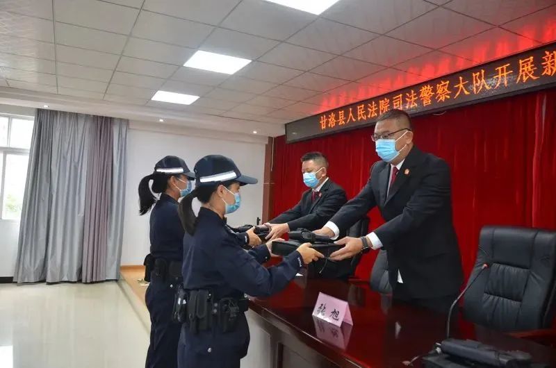 9月28日上午,四川省甘洛法院司法警察大隊舉行新型警用裝備配發儀式,儀式由分管司法警務工作的黨組成員、副院長阿木以卡主持,黨組書記、院長張旭出席儀式并講話。